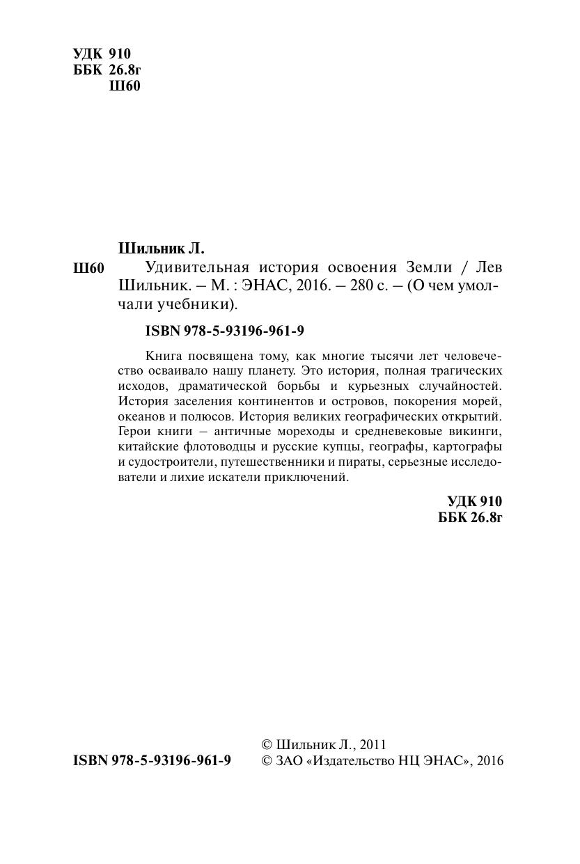 Книга посвящена тому, как многие тысячи лет человечество осваивало нашу планету. Это история, полная трагических исходов, драматической борьбы и курьезных случайностей. История заселения континентов и островов, покорения морей, океанов и полюсов. История великих географических открытий. Герои книги – античные мореходы и средневековые викинги, китайские флотоводцы и русские купцы, географы, картографы и судострои тели, путе шественники и пираты, серьезные исследователи и лихие искатели приключений.