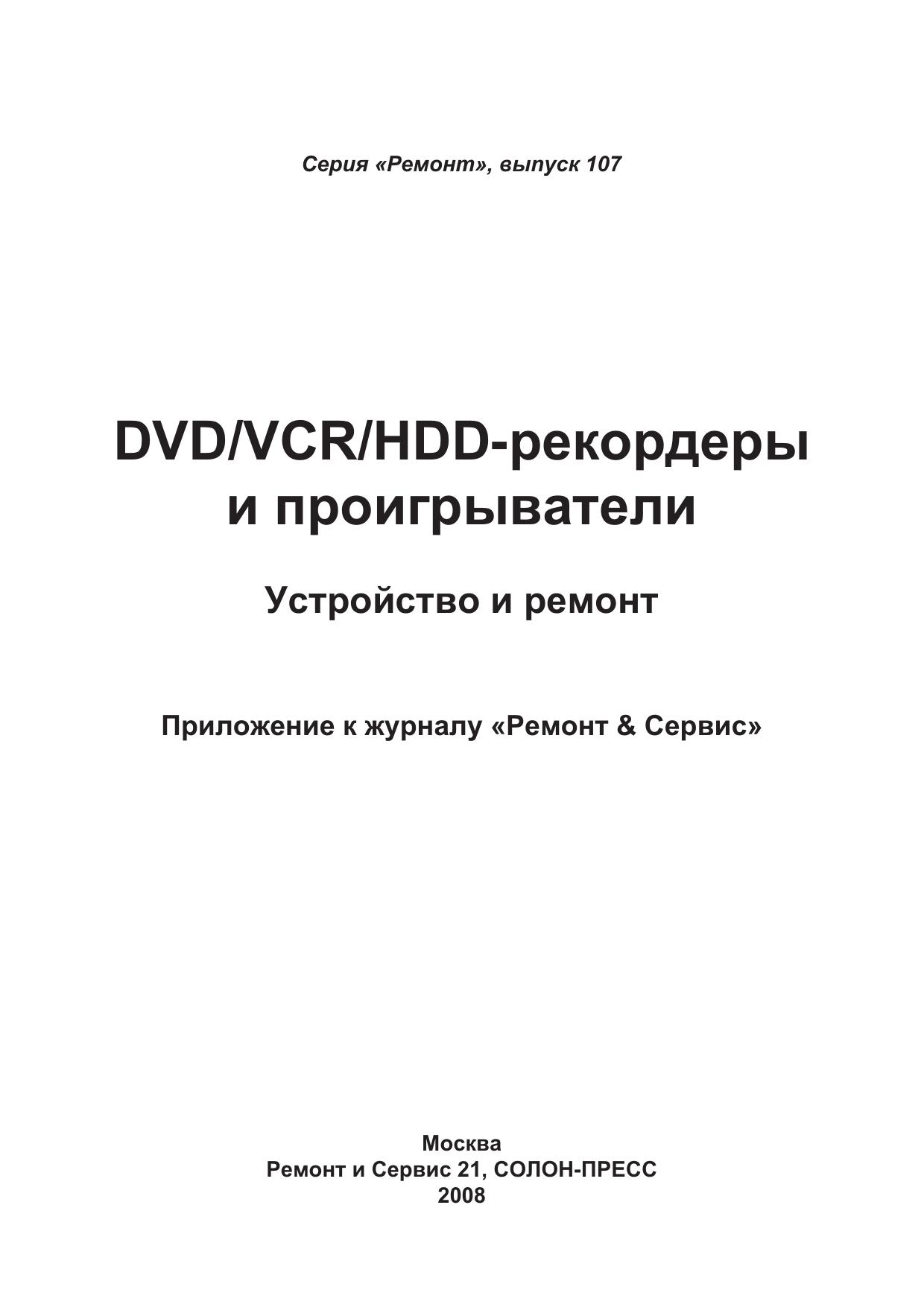 Выпуск 107. DVD/VCR/HDD-рекордеры и проигрыватели. Устройство и ремонт