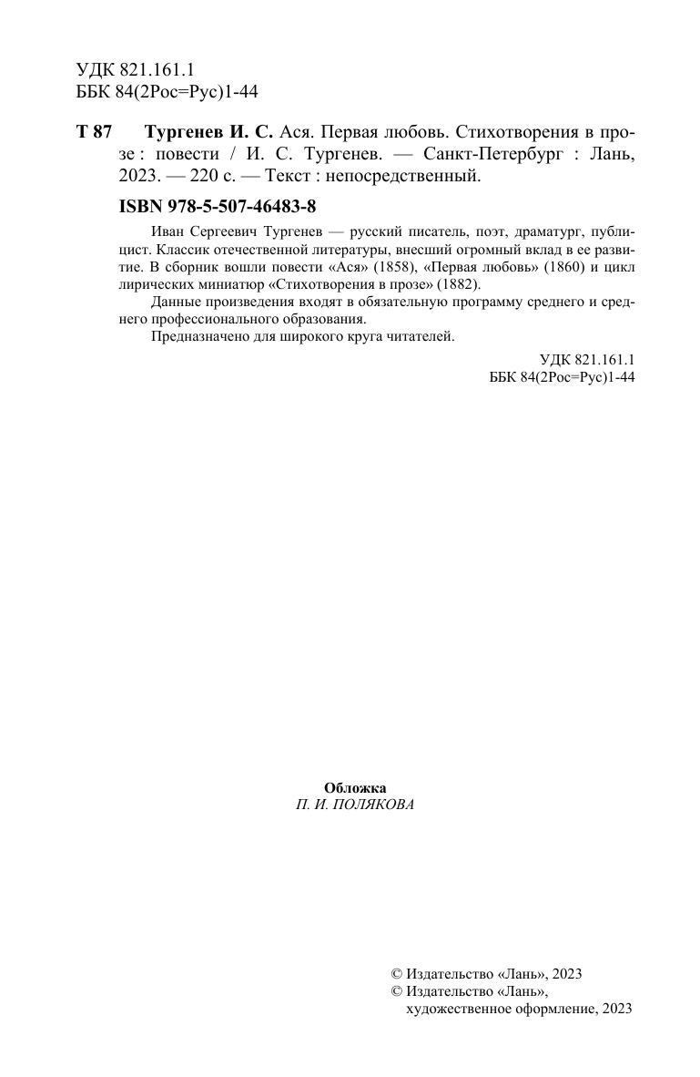 Иван Сергеевич Тургенев — русский писатель, поэт, драматург, публицист. Классик отечественной литературы, внесший огромный вклад в ее развитие. В сборник вошли повести «Ася» (1858), «Первая любовь» (1860) и цикл лирических миниатюр «Стихотворения в прозе» (1882). Данные произведения входят в обязательную программу среднего и среднего профессионального образования. Предназначено для широкого круга читателей.