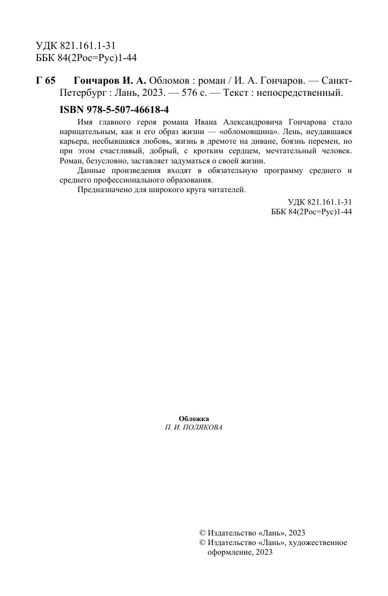 Имя главного героя романа Ивана Александровича Гончарова стало нарицательным, как и его образ жизни — «обломовщина». Лень, неудавшаяся карьера, несбывшаяся любовь, жизнь в дремоте на диване, боязнь перемен, но при этом счастливый, добрый, с кротким сердцем, мечтательный человек. Роман, безусловно, заставляет задуматься о своей жизни. Данные произведения входят в обязательную программу среднего и среднего профессионального образования. Предназначено для широкого круга читателей.