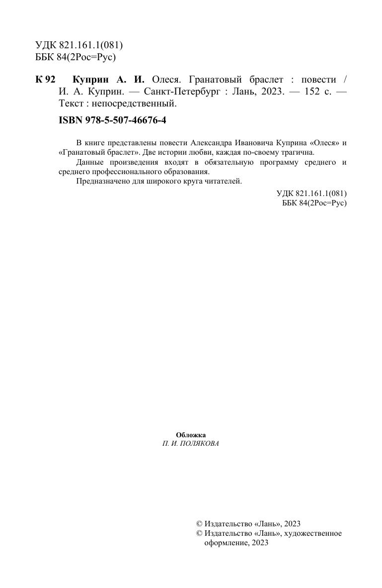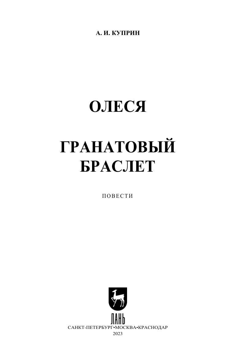 В книге представлены повести Александра Ивановича Куприна «Олеся» и «Гранатовый браслет». Две истории любви, каждая по-своему трагична. Данные произведения входят в обязательную программу среднего и среднего профессионального образования. Предназначено для широкого круга читателей.