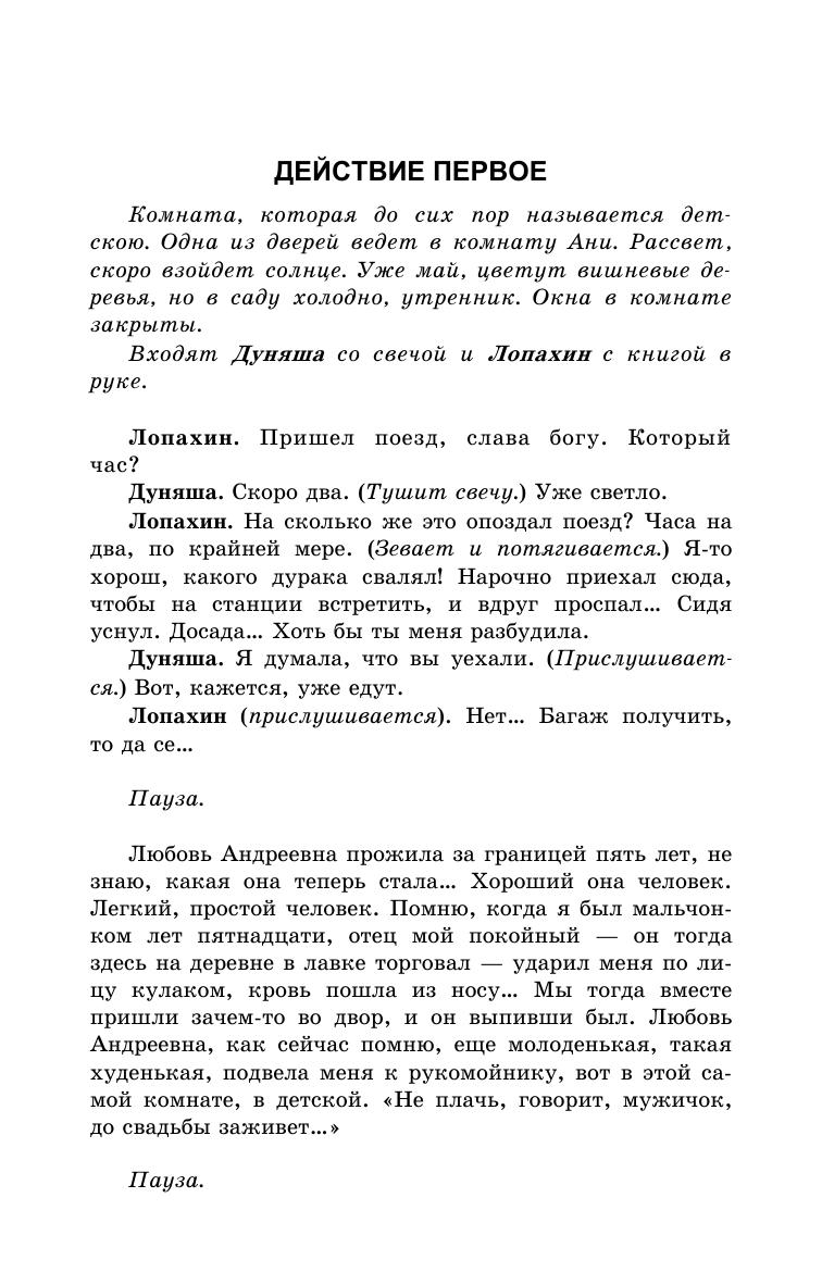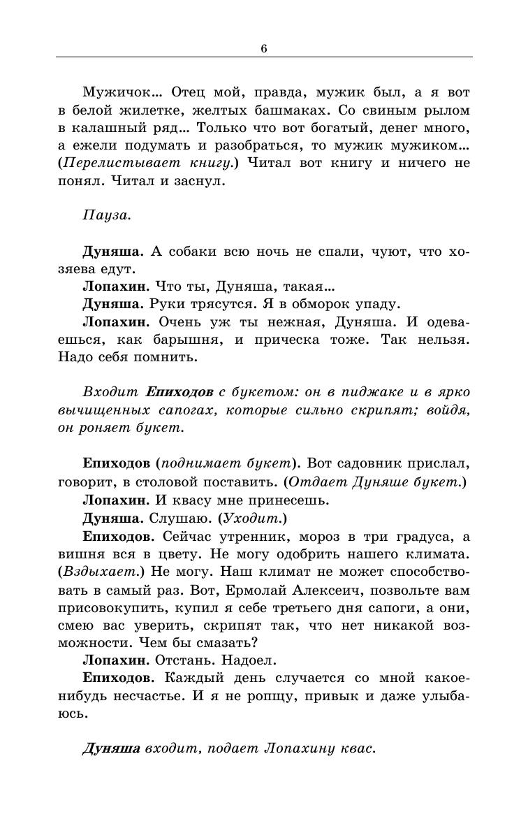 В сборник вошли пьеса «Вишневый сад», а также рассказы: «Дом с мезонином», «Человек в футляре», «Палата № 6», «Душечка», «Ионыч», «Крыжовник», «О любви», «Попрыгунья», «Лошадиная фамилия», «Студент», «Толстый и тонкий» и «Хамелеон». Антон Павлович Чехов в своих произведениях умело сочетает и трагизм, и искрометный юмор, описывая взаимоотношения между людьми так тонко, что его рассказы и пьесы сохраняют актуальность и в наши дни. Данные произведения входят в обязательную программу среднего и среднего профессионального образования. Предназначено для широкого круга читателей.