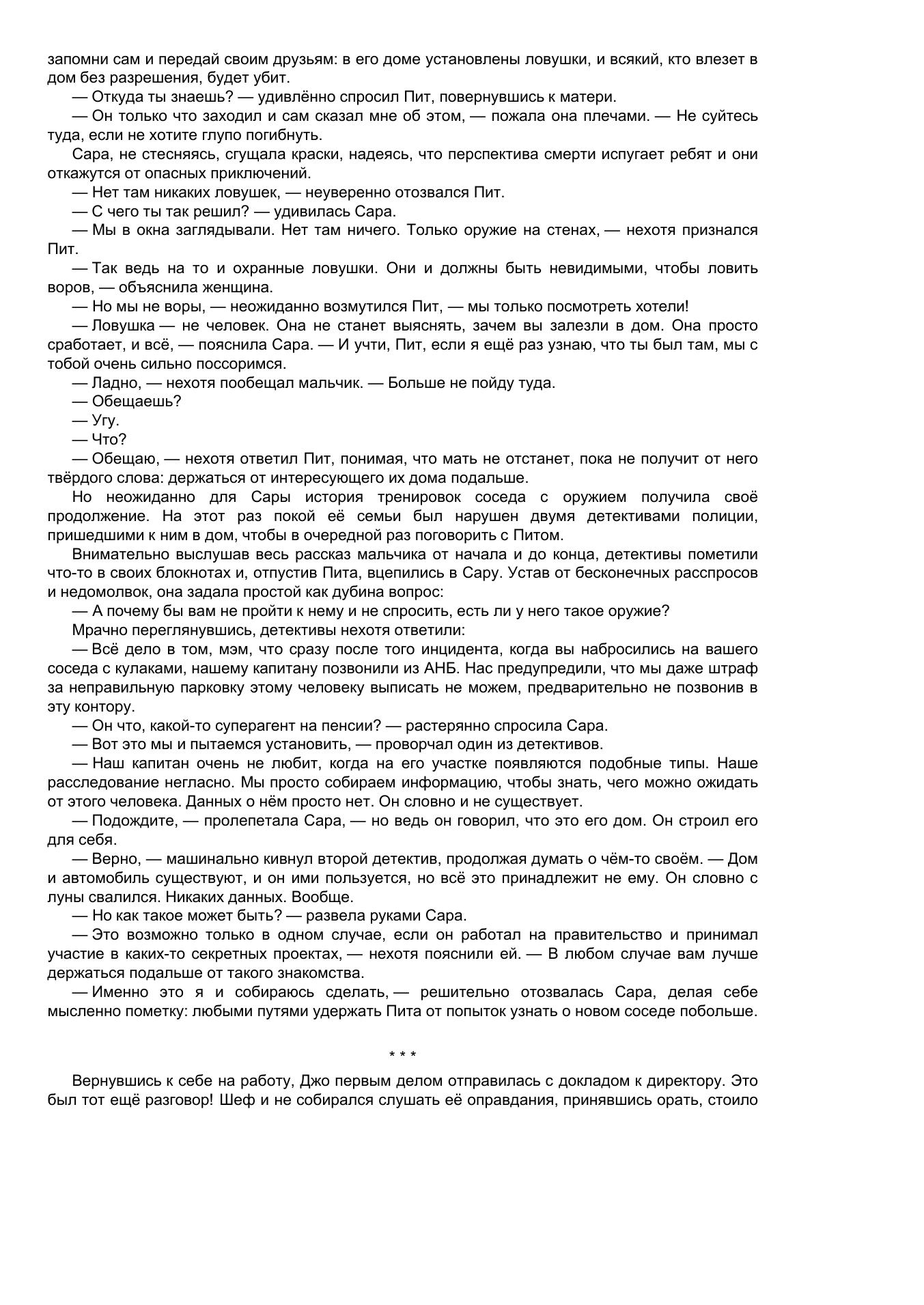 А ещё ему, человеку, который привык работать один, навязали напарницу - агента Салли Кларк, молодую, решительную особу. Вместе им предстоит пережить многое, и что ждёт их в конце пути, не знает никто.