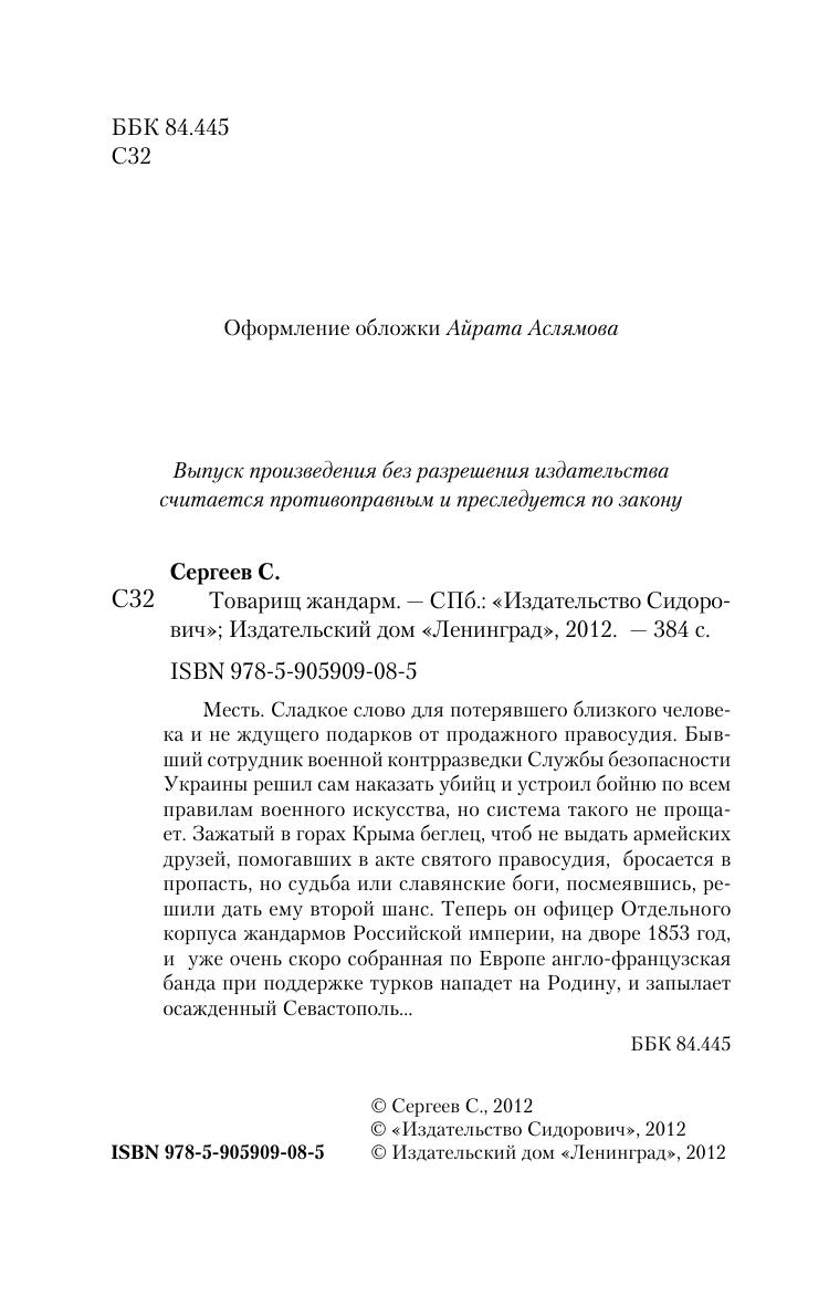 Месть. Сладкое слово для потерявшего близкого человека и не ждущего подарков от продажного правосудия. Бывший сотрудник военной контрразведки Службы безопасности Украины решил сам наказать убийц и устроил бойню по всем правилам военного искусства, но система такого не прощает. Зажатый в горах Крыма беглец, чтоб не выдать армейских друзей, помогавших в акте святого правосудия, бросается в пропасть, но судьба или славянские боги, посмеявшись, решили дать ему второй шанс. Теперь он офицер Отдельного корпуса жандармов Российской империи, на дворе 1853 год, и уже очень скоро собранная по Европе англо-французская банда при поддержке турков нападет на Родину, и запылает осажденный Севастополь…