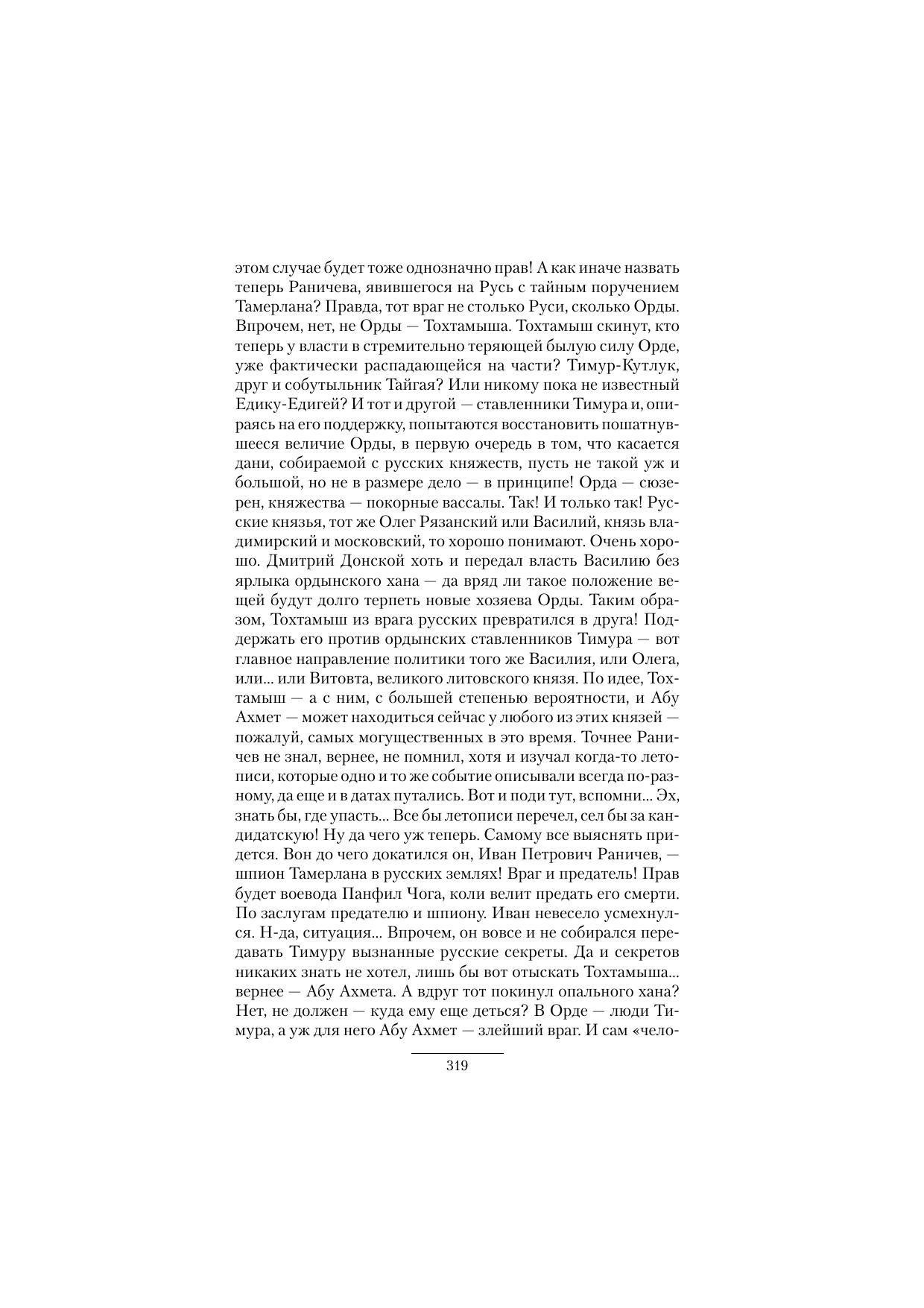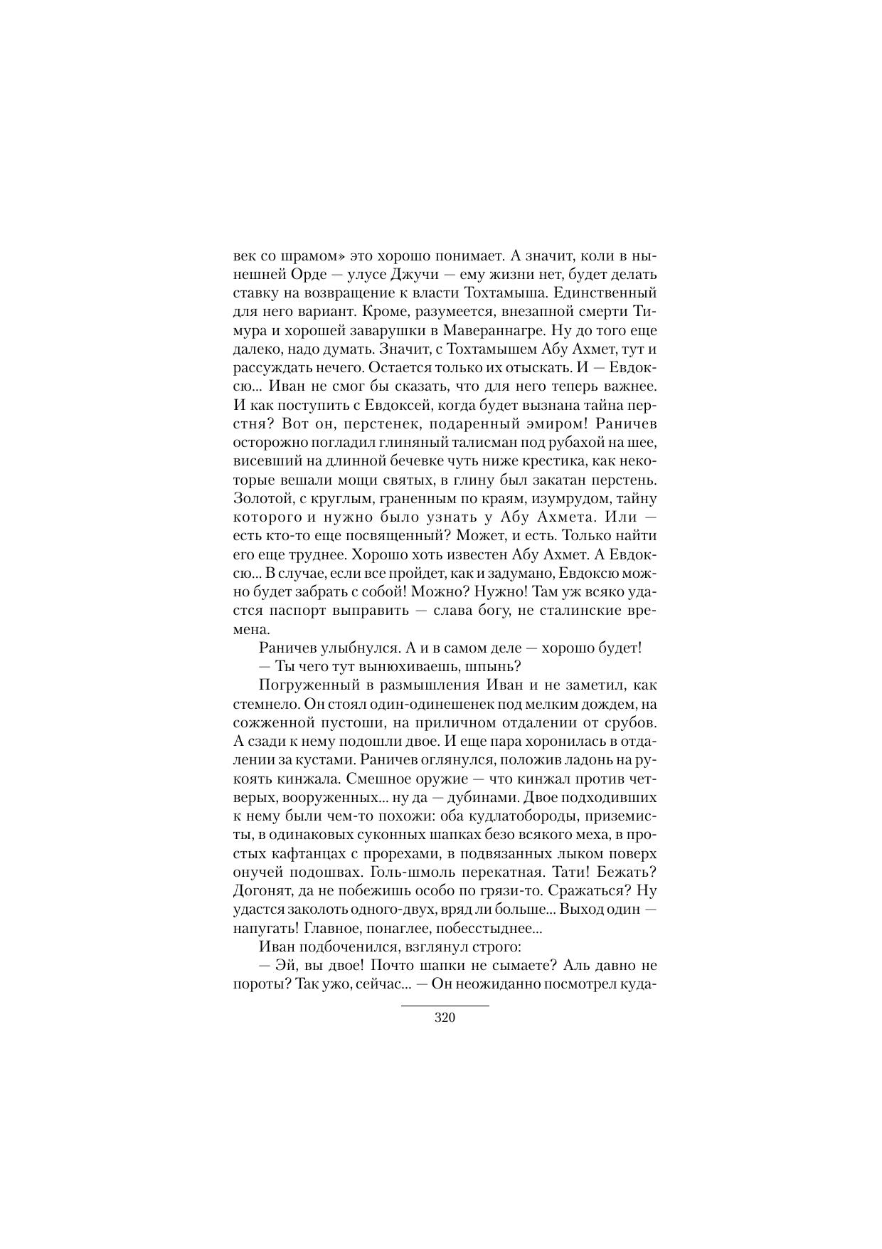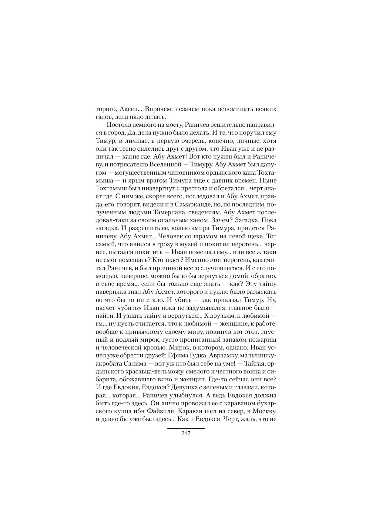 Облеченный доверием эмира Тимура, грозного повелителя Мавераннагра, Сеистана, Хорезма и еще многих земель, Иван Петрович Раничев (наш современник, случайно оказавшийся в прошлом) вновь возвращается на Русь, чтобы отыскать смертельного врага эмира – человека со шрамом – Абу Ахмета, следы которого ведут в Киев, ко двору опального ордынского хана Тохтамыша.