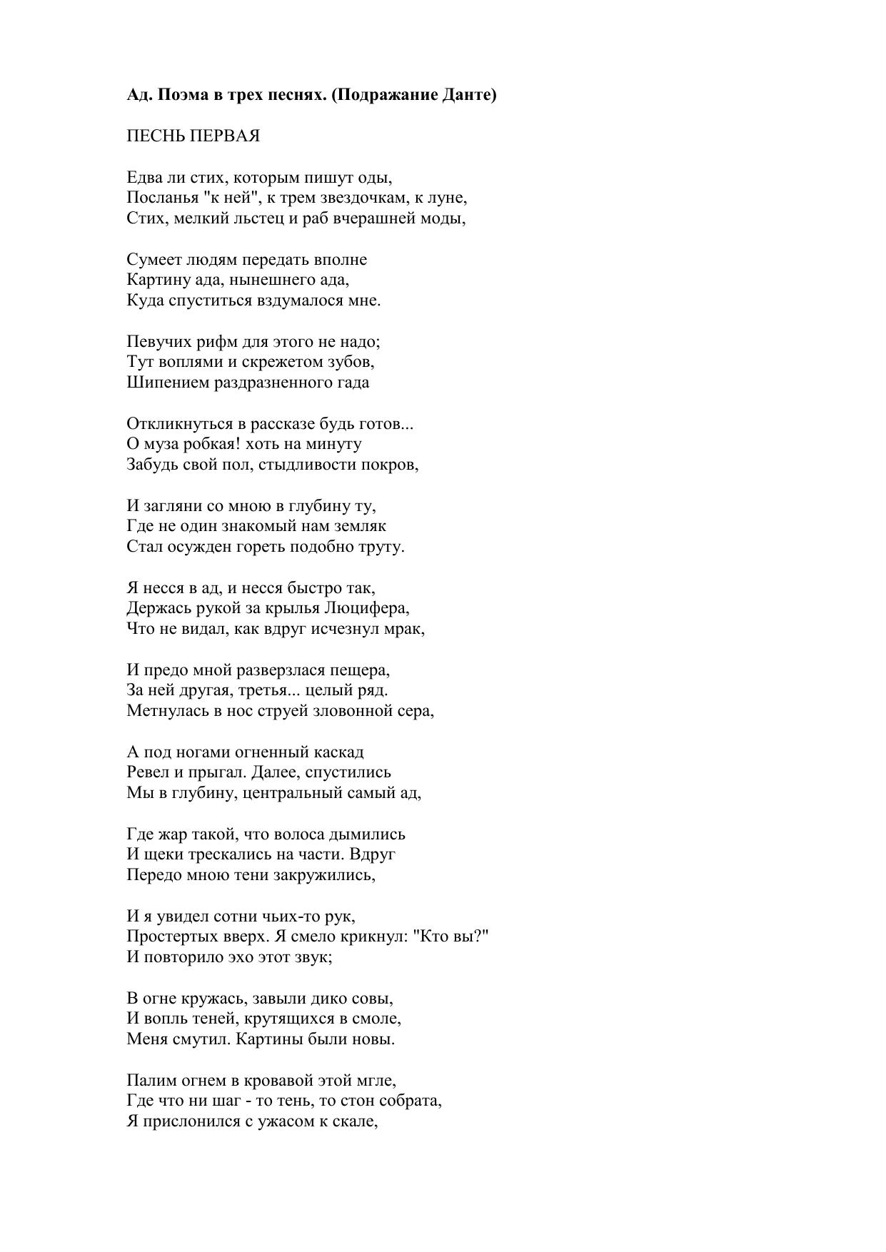 Ад. Поэма в трех песнях. Подражание Данте