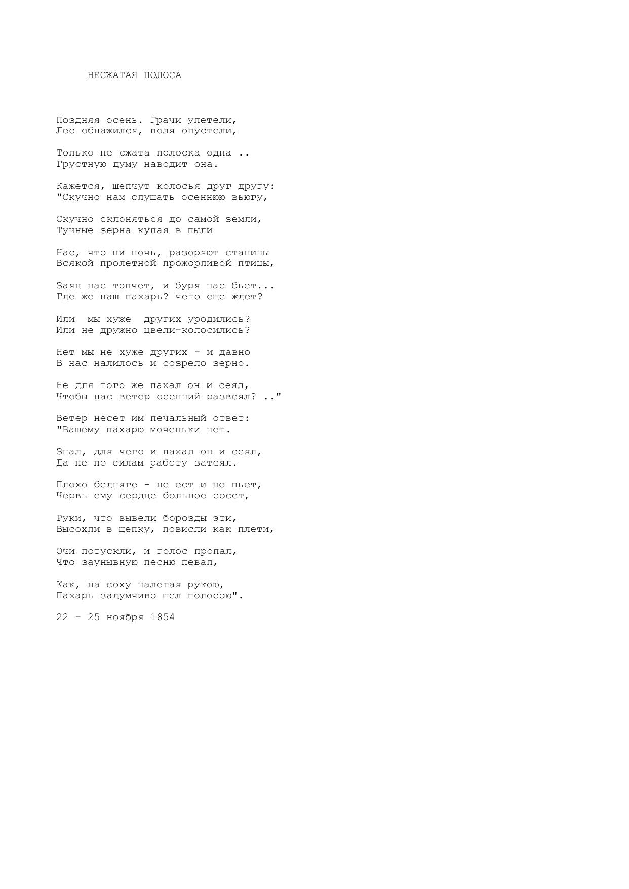 Несжатая полоса (Поздняя осень. Грачи улетели...)