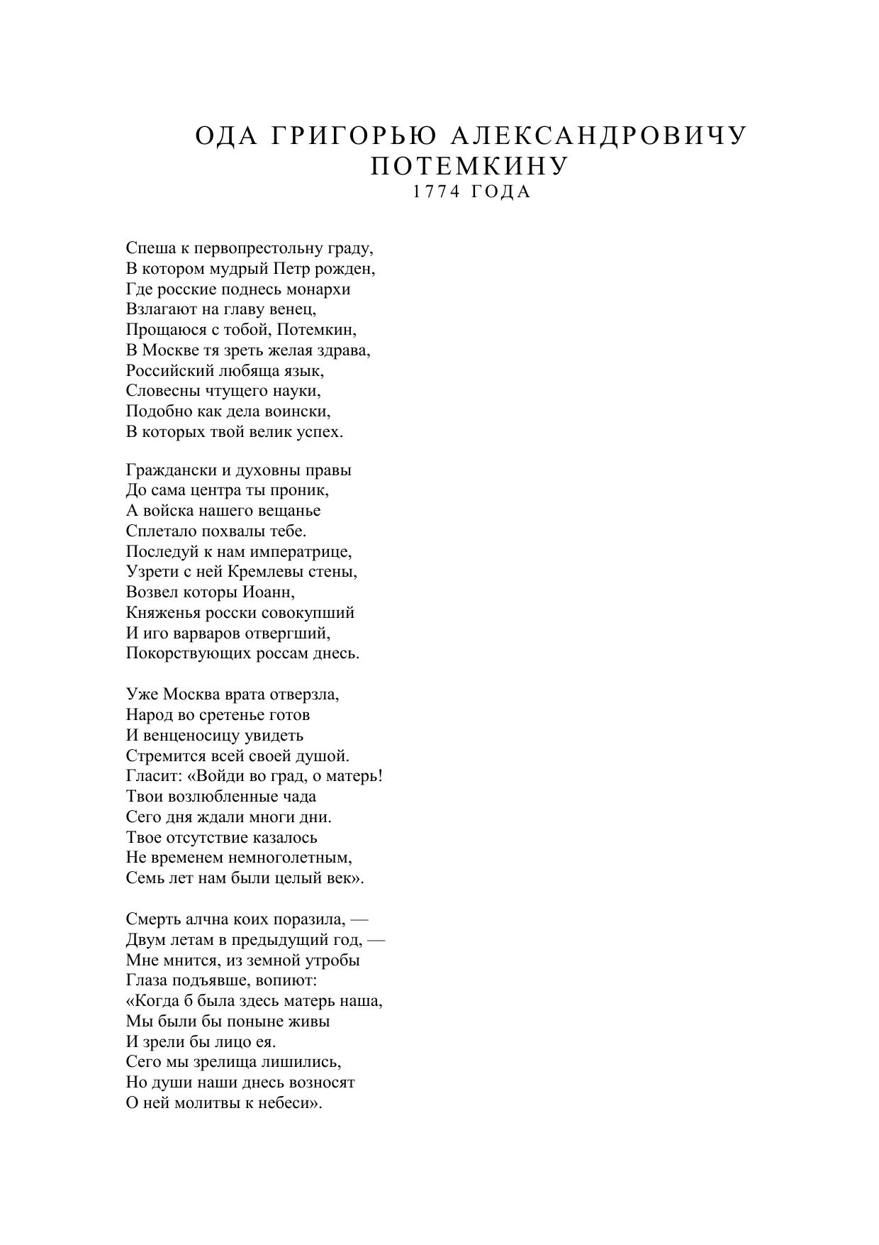 Ода Григорью Александровичу Потемкину