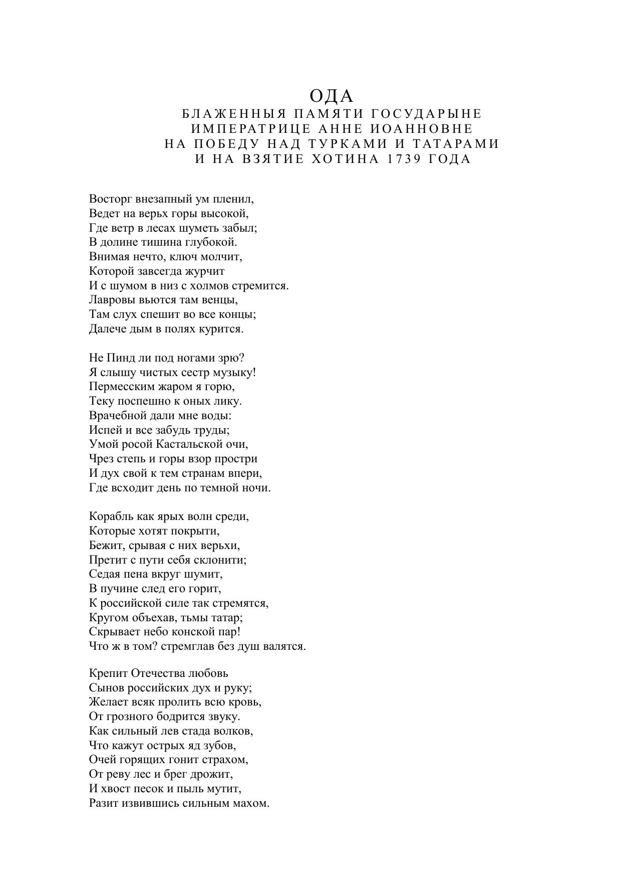 Ода блаженный памяти государыне императрице Анне Иоанновне на победу над турками и татарами и на взятие Хотина 1739 года