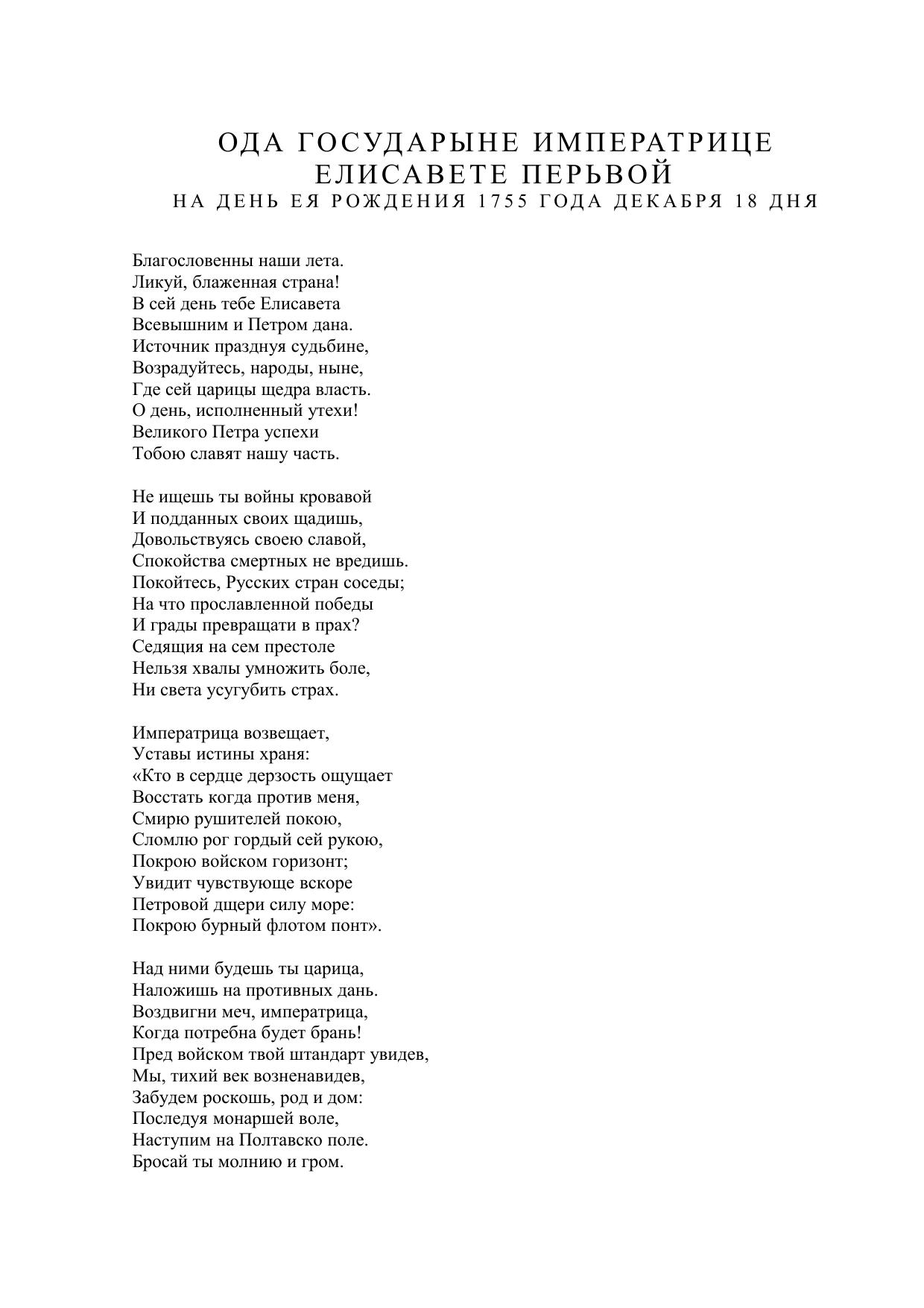 Ода государыне императрице Елисавете Перьвой на день ея рождения 1755 года декабря 18 дня