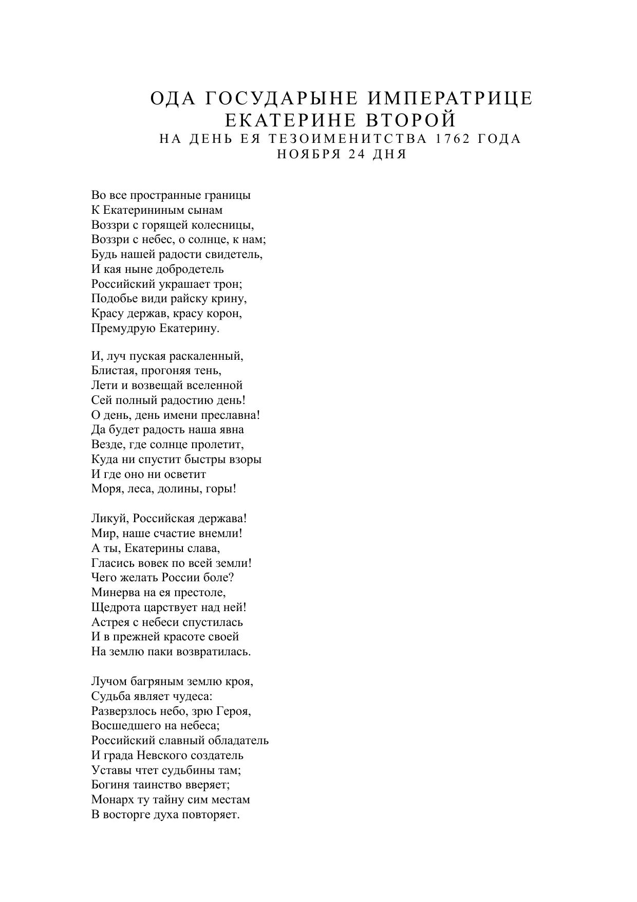 Ода государыне императрице Екатерине Второй на день ея тезоименитства 1762 года ноября 24 дня
