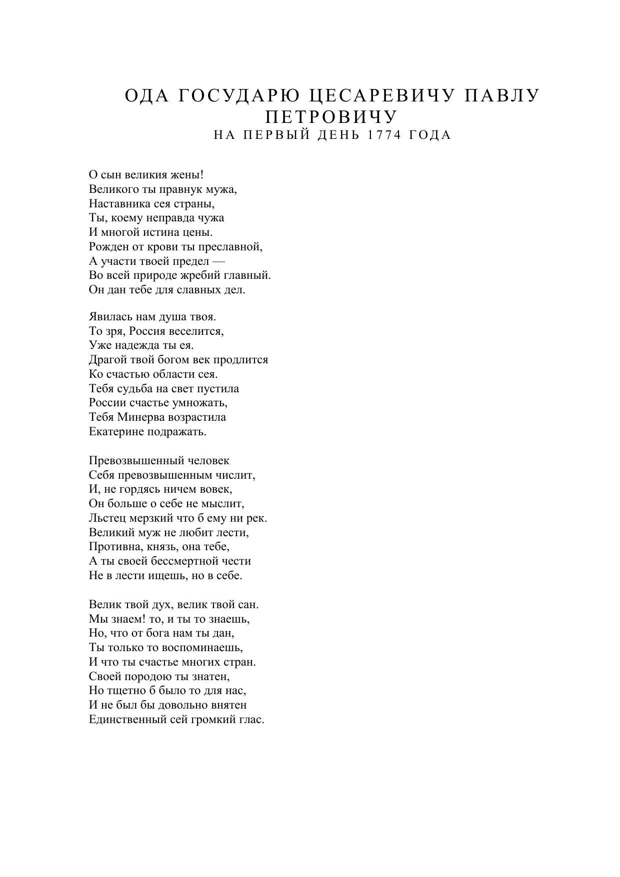 Ода государю цесаревичу Павлу Петровичу на первый день 1774 года