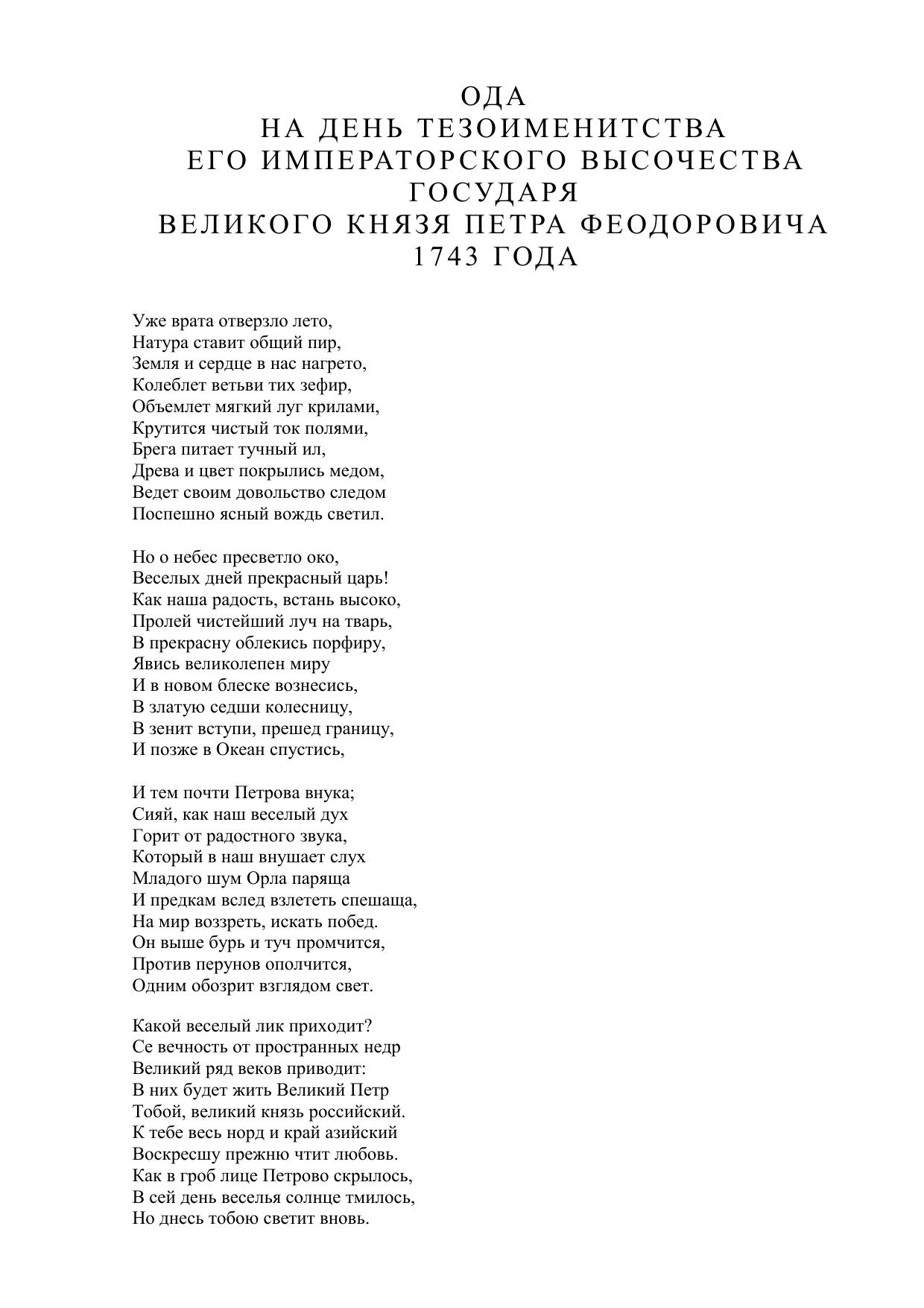Ода на день тезоименитства великого князя Петра Феодоровича 1743 года