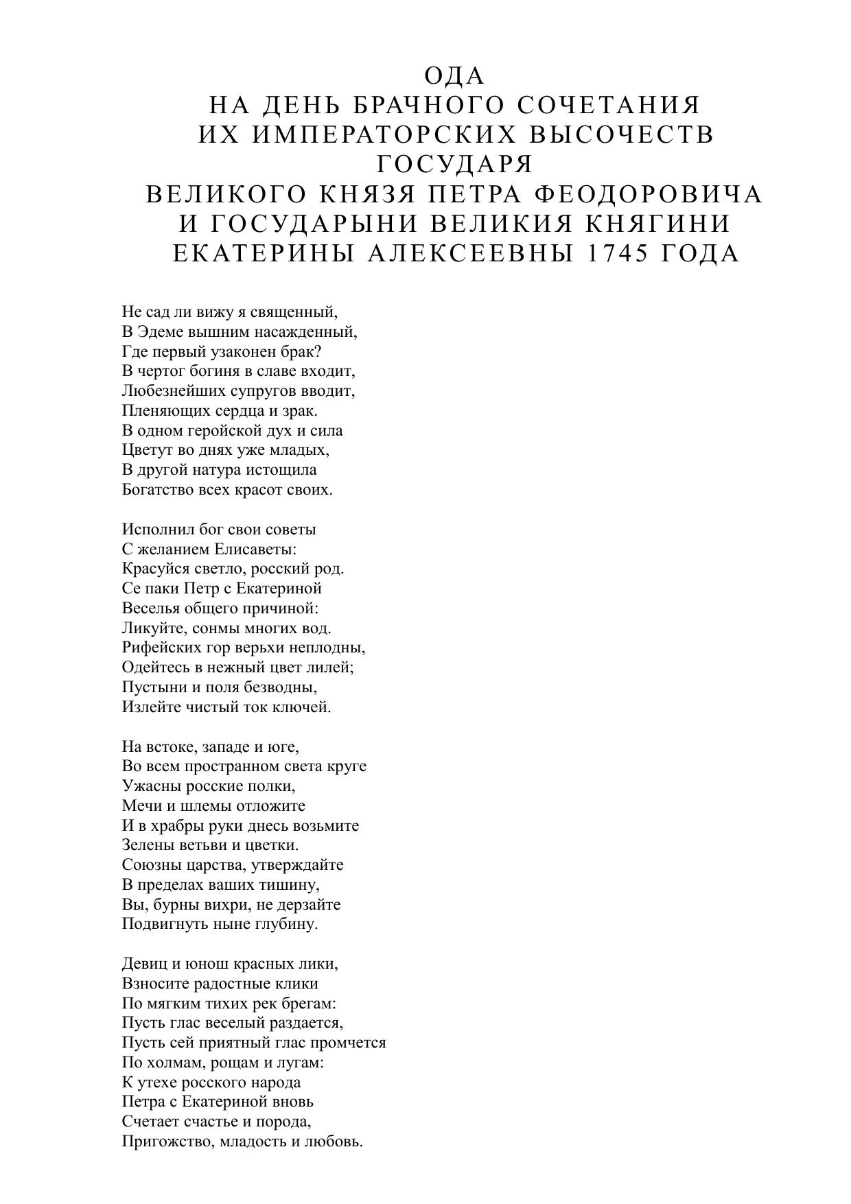 Ода на день брачного сочетания великого князя Петра Феодоровича и великий княгини Екатерины Алексеевны 1745 года