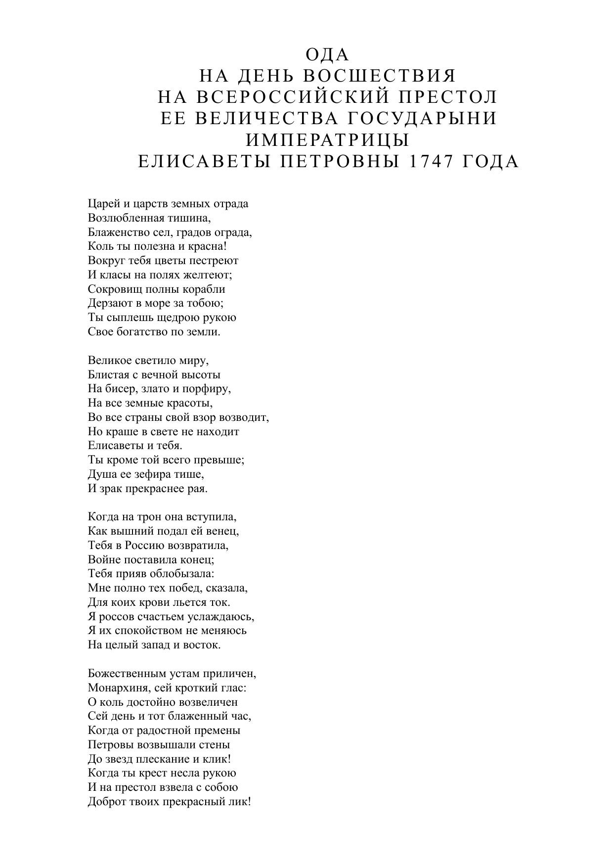 Ода на день восшествия на престол императрицы Елисаветы Петровны 1747 года