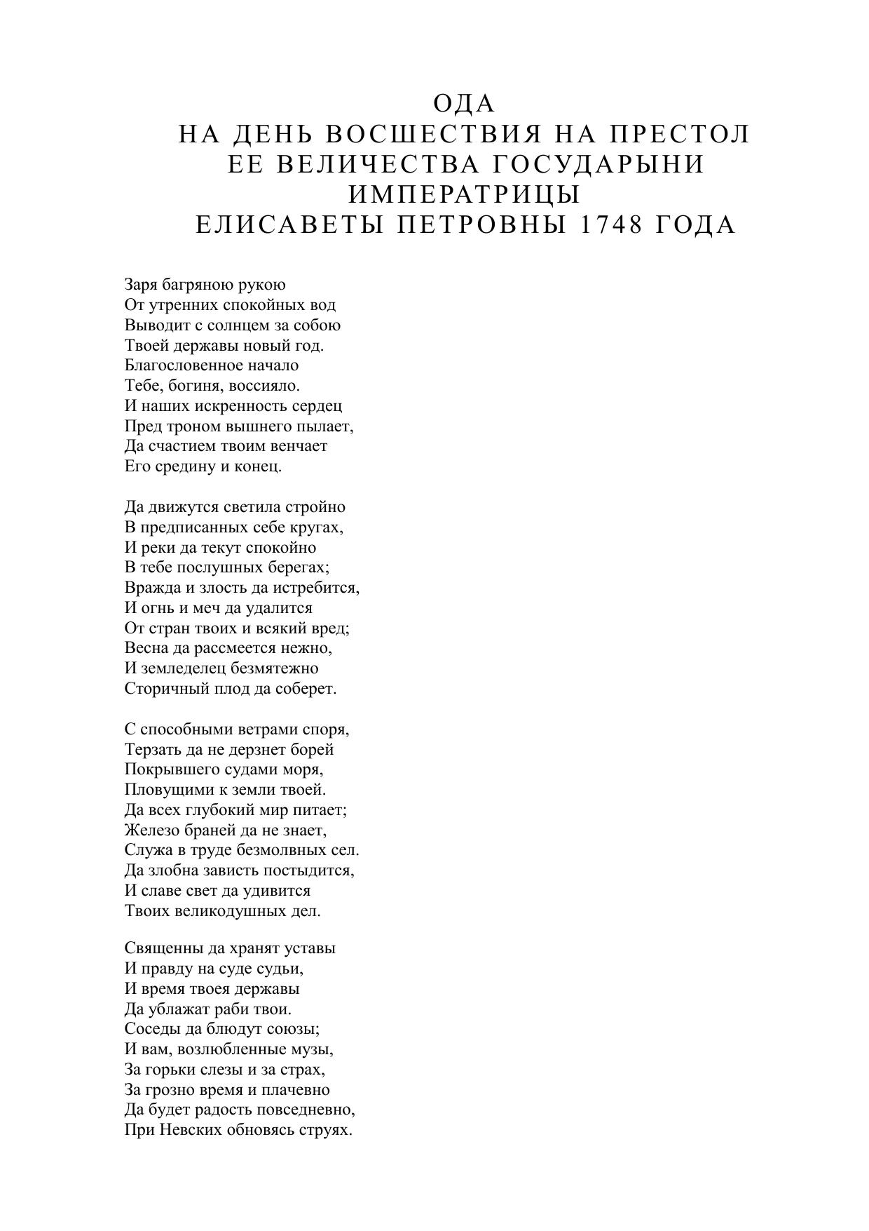 Ода на день восшествия на престол императрицы Елисаветы Петровны 1748 года