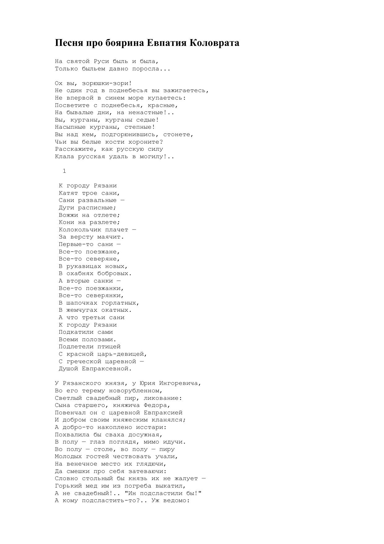 Песня про боярина Евпатия Коловрата