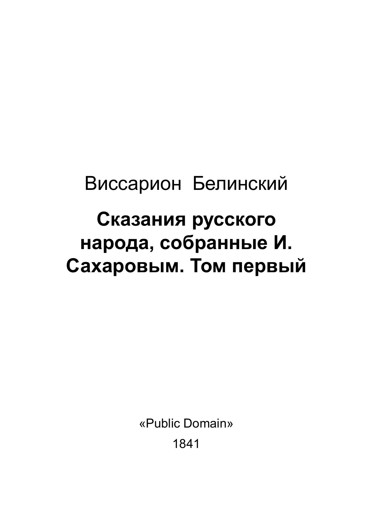 Сказания русского народа, собранные И. Сахаровым. Том первый