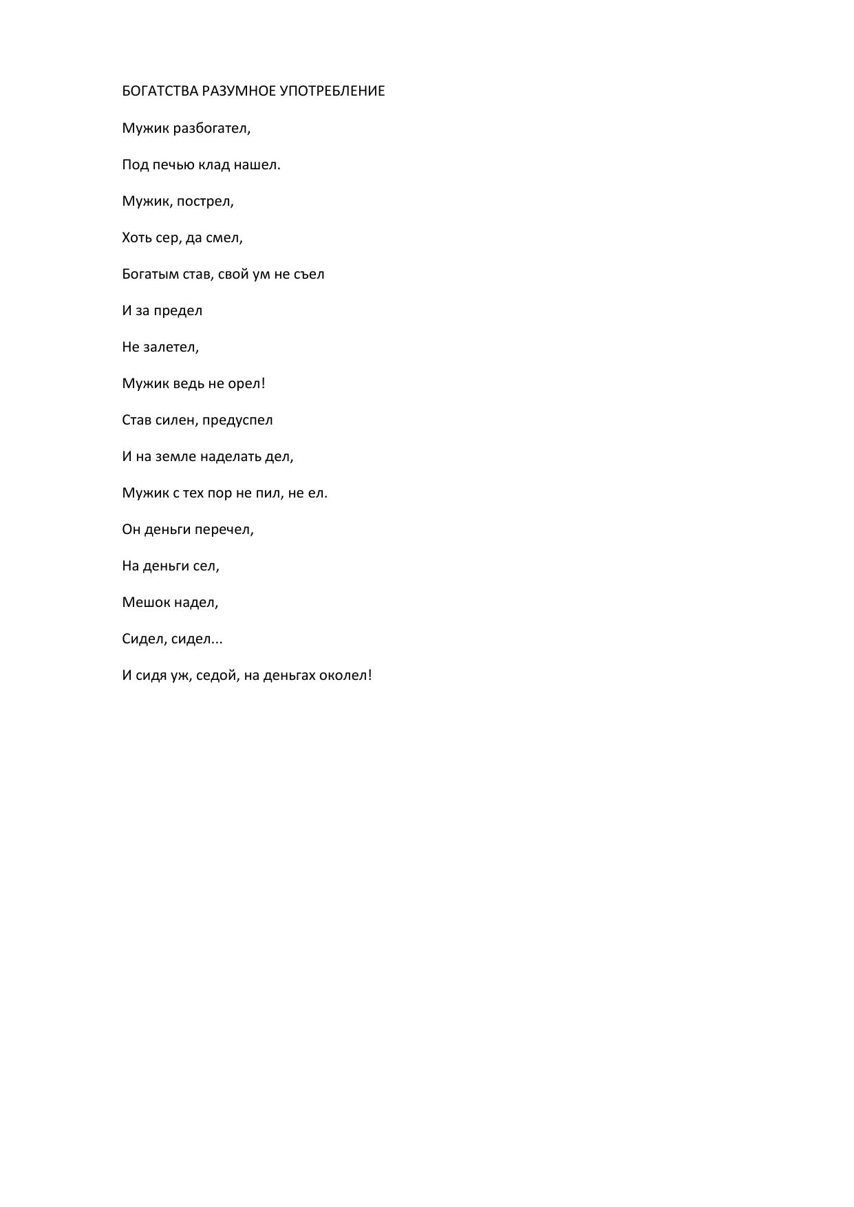 Богатства разумное употребление