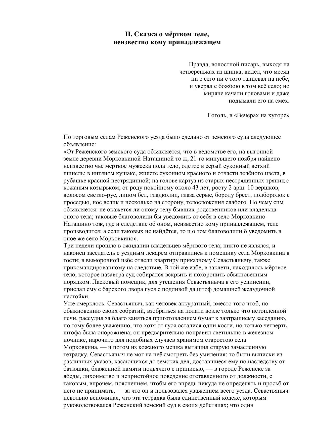 II. Сказка о мёртвом теле, неизвестно кому принадлежащем