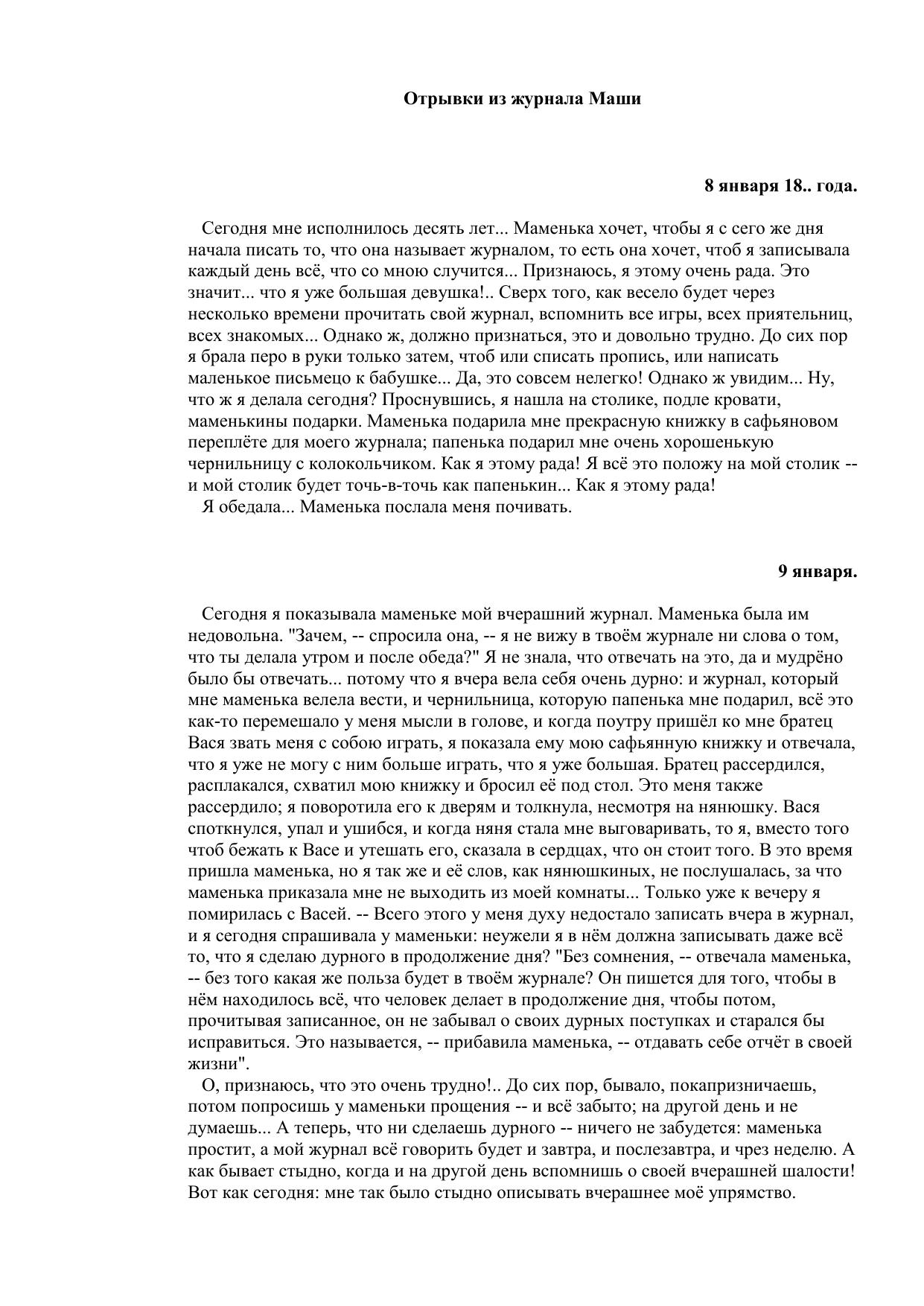 Отрывки из журнала Маши