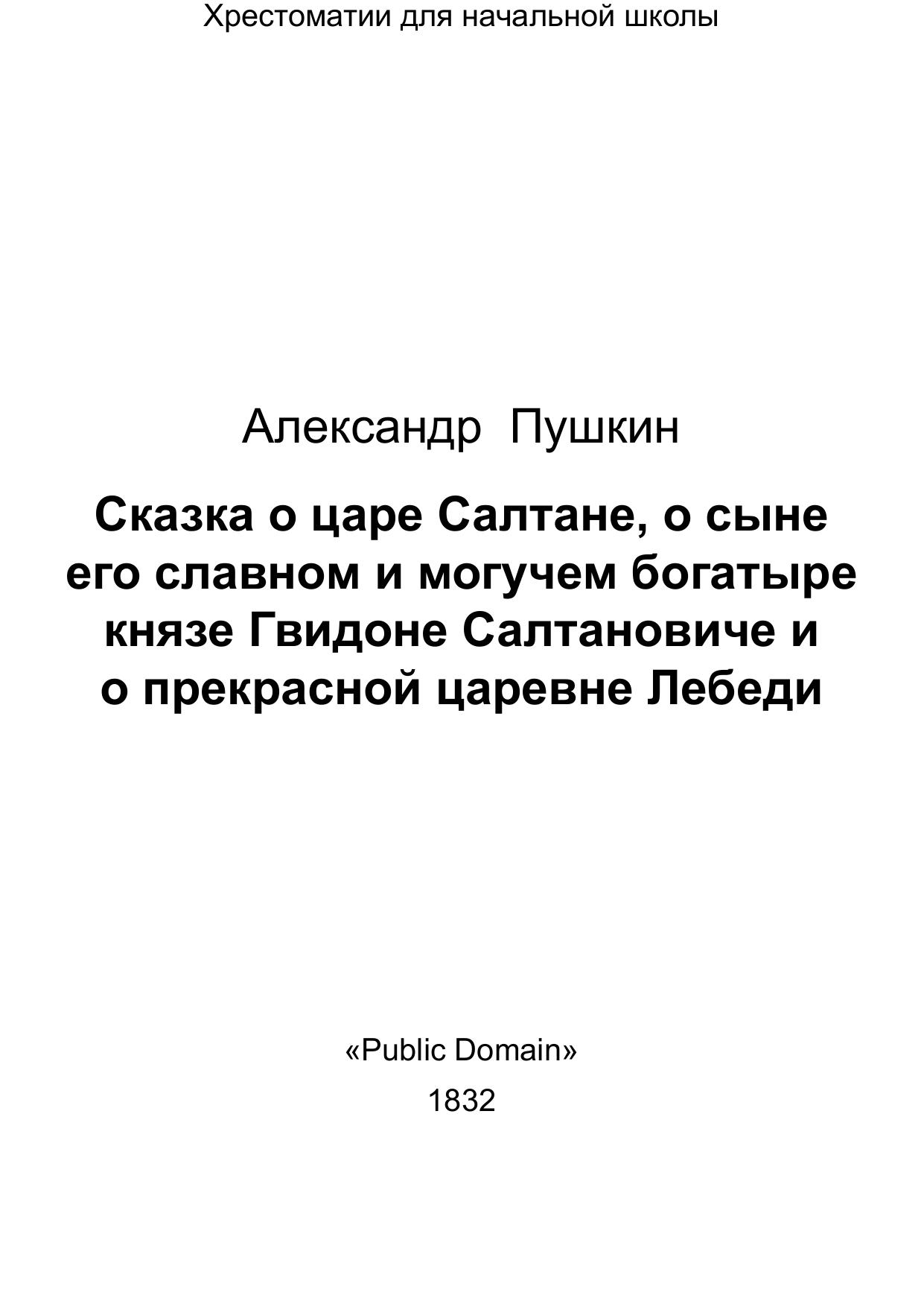 Сказка о царе Салтане, о сыне его славном и могучем богатыре князе Гвидоне Салтановиче и о прекрасной царевне Лебеди