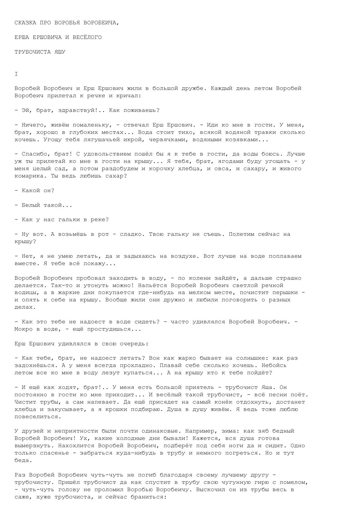 Сказка про Воробья Воробеича, Ерша Ершовича и весёлого трубочиста Яшу