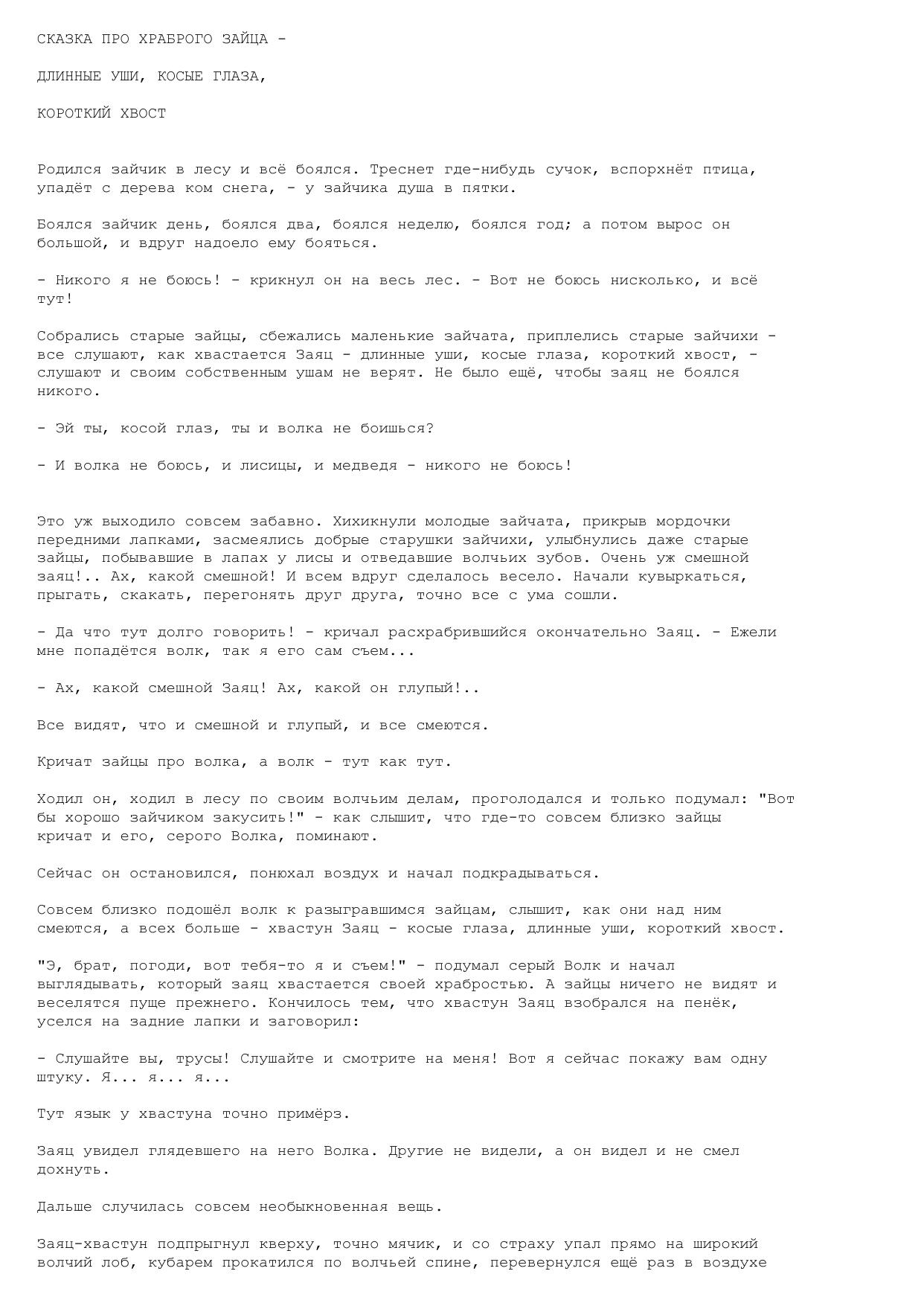 Сказка про храброго Зайца - длинные уши, косые глаза, короткий хвост
