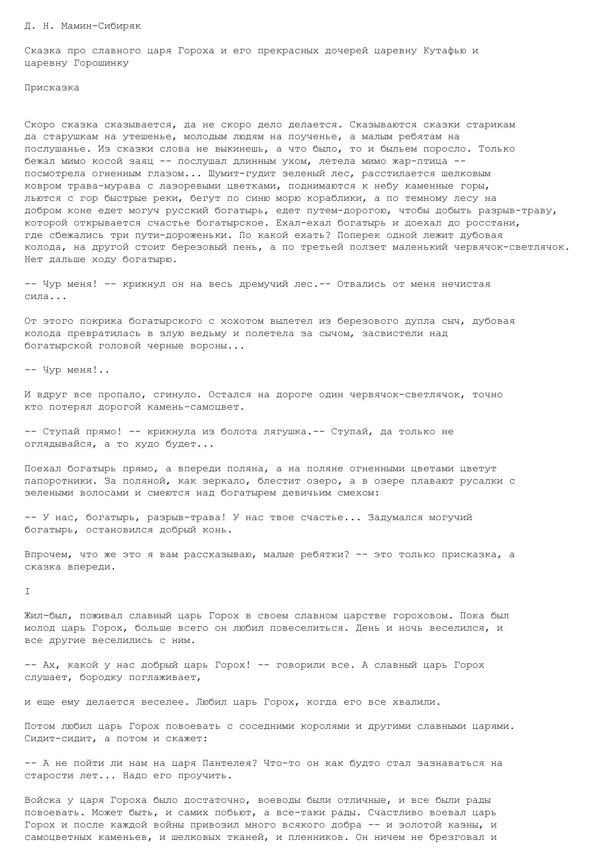 Сказка про славного царя Гороха и его прекрасных дочерей царевну Кутафью и царевну Горошинку