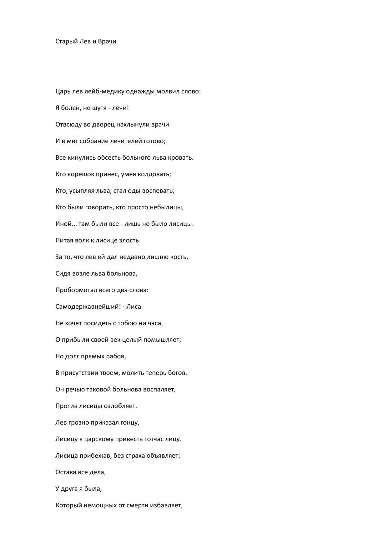 Старый Лев и Врачи