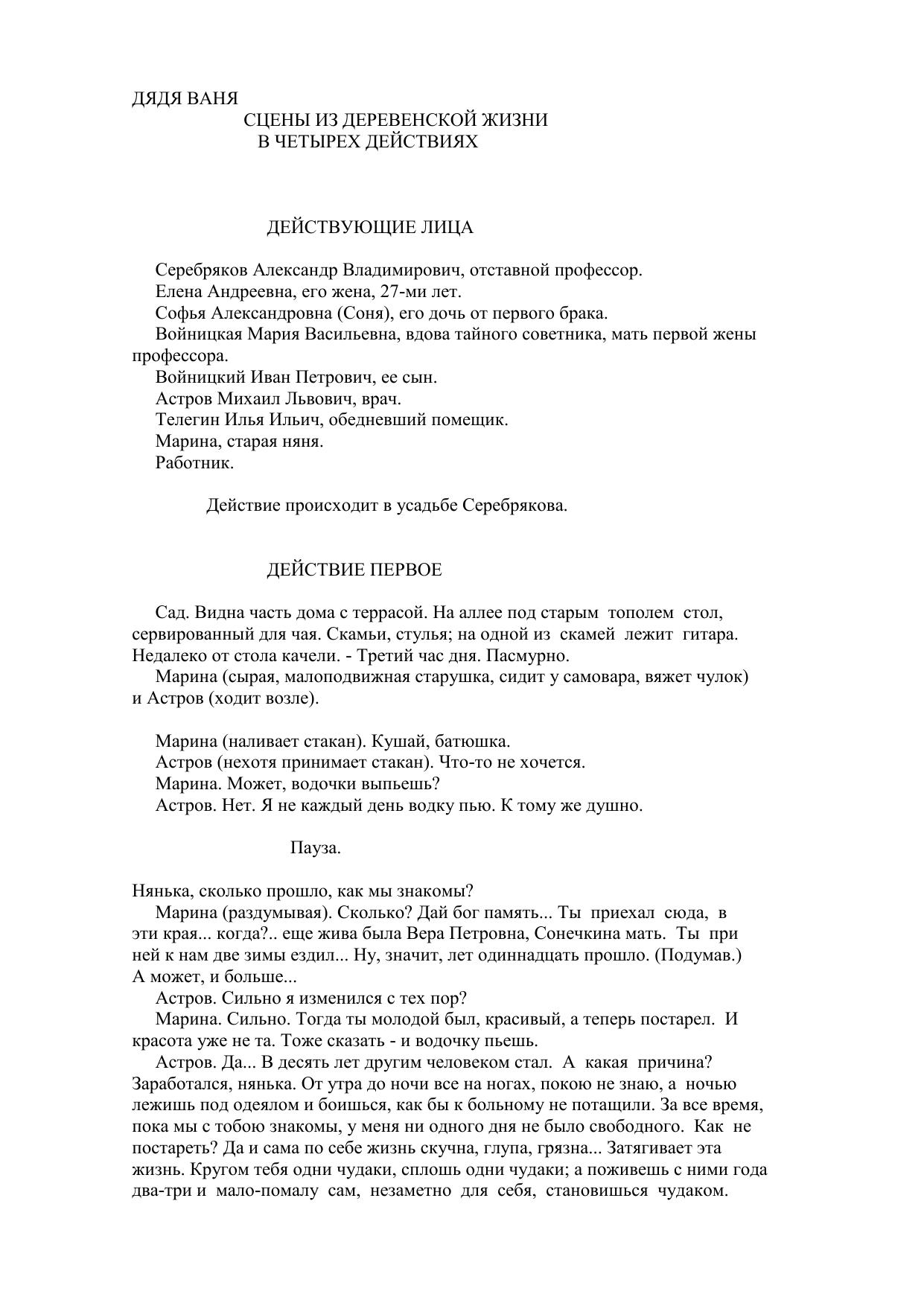 Дядя Ваня. Сцены из деревенской жизни в четырёх действиях
