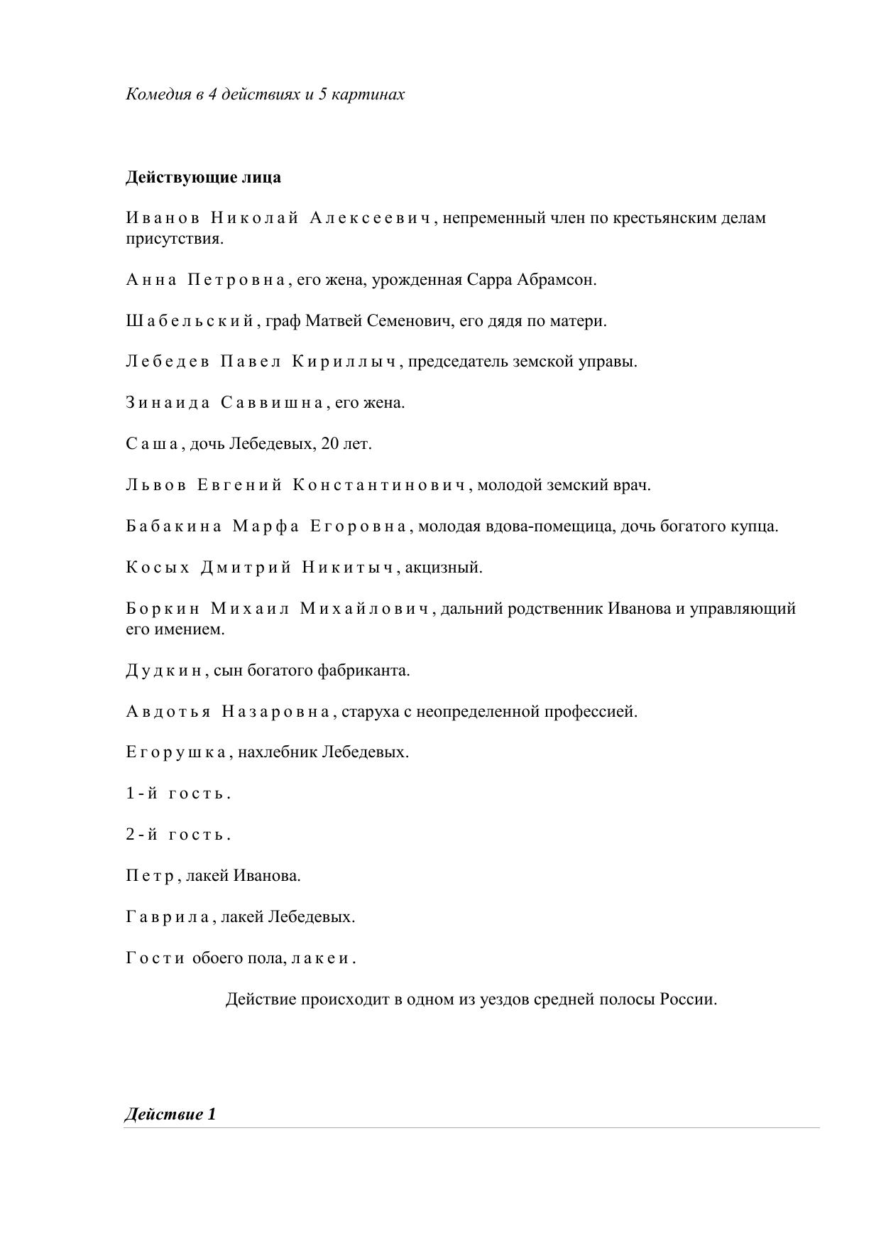 Иванов. Комедия в четырёх действиях и пяти картинах