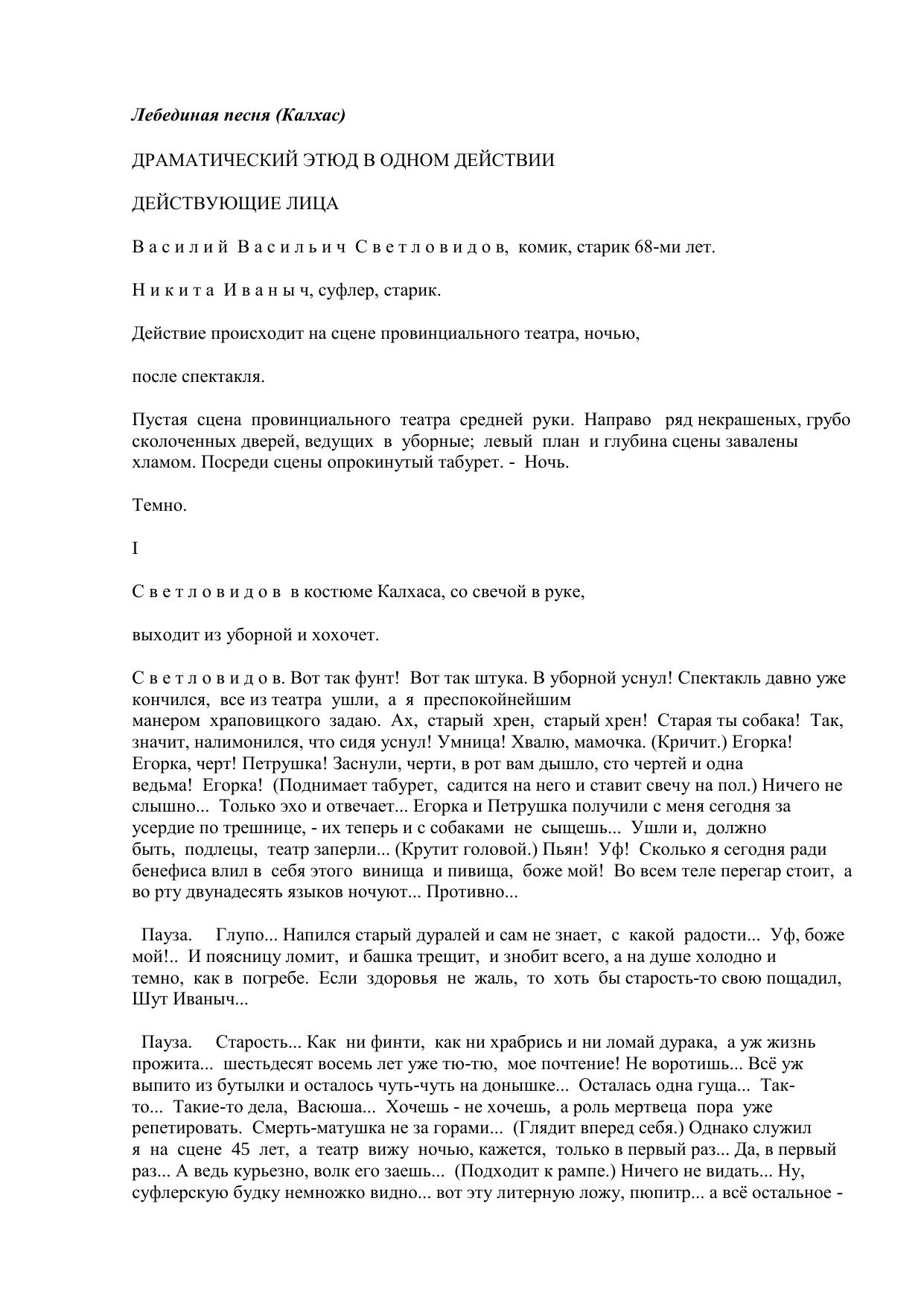 Лебединая песня (Калхас). Драматический этюд в одном действии