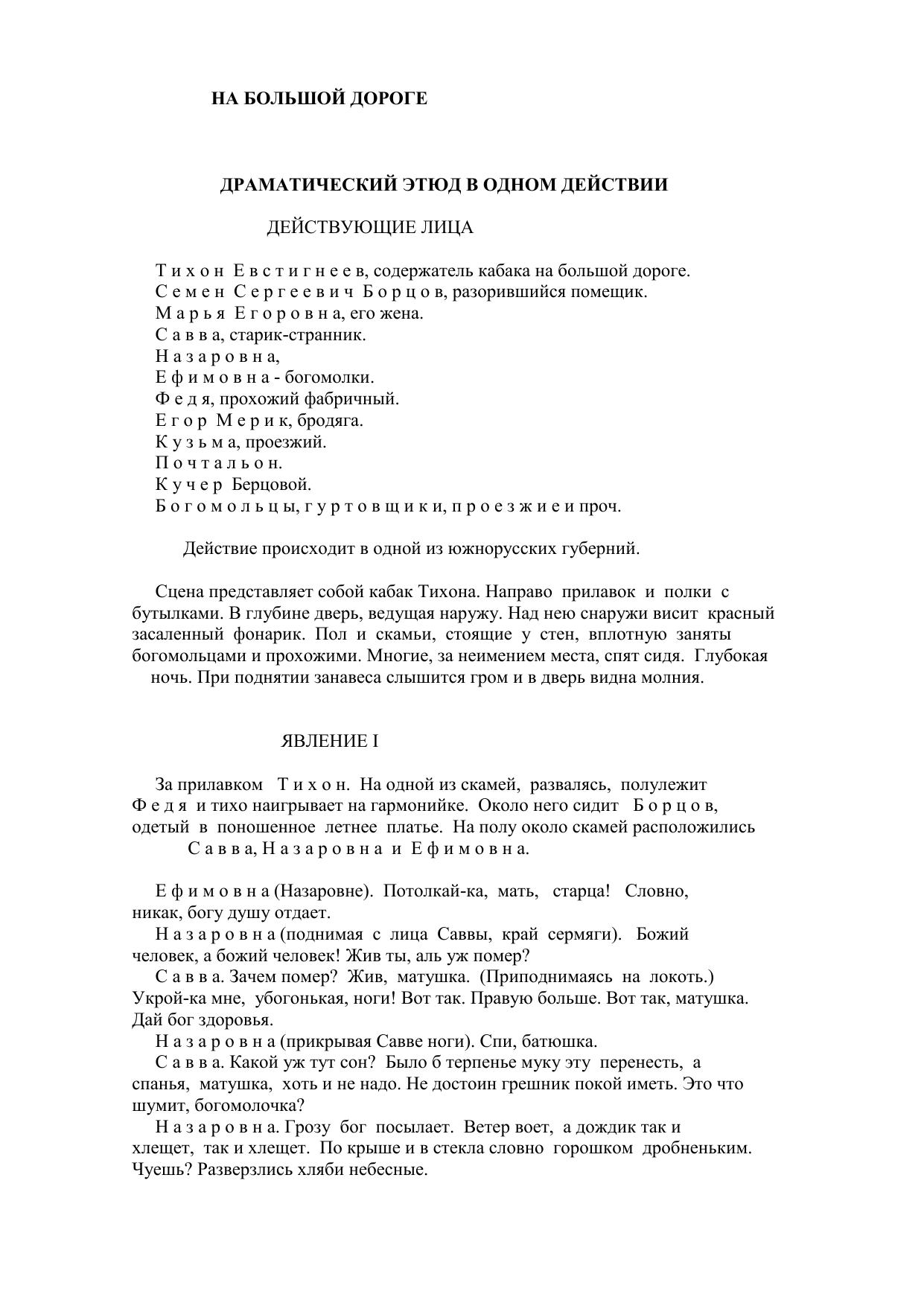 На большой дороге. Драматический этюд в одном действии