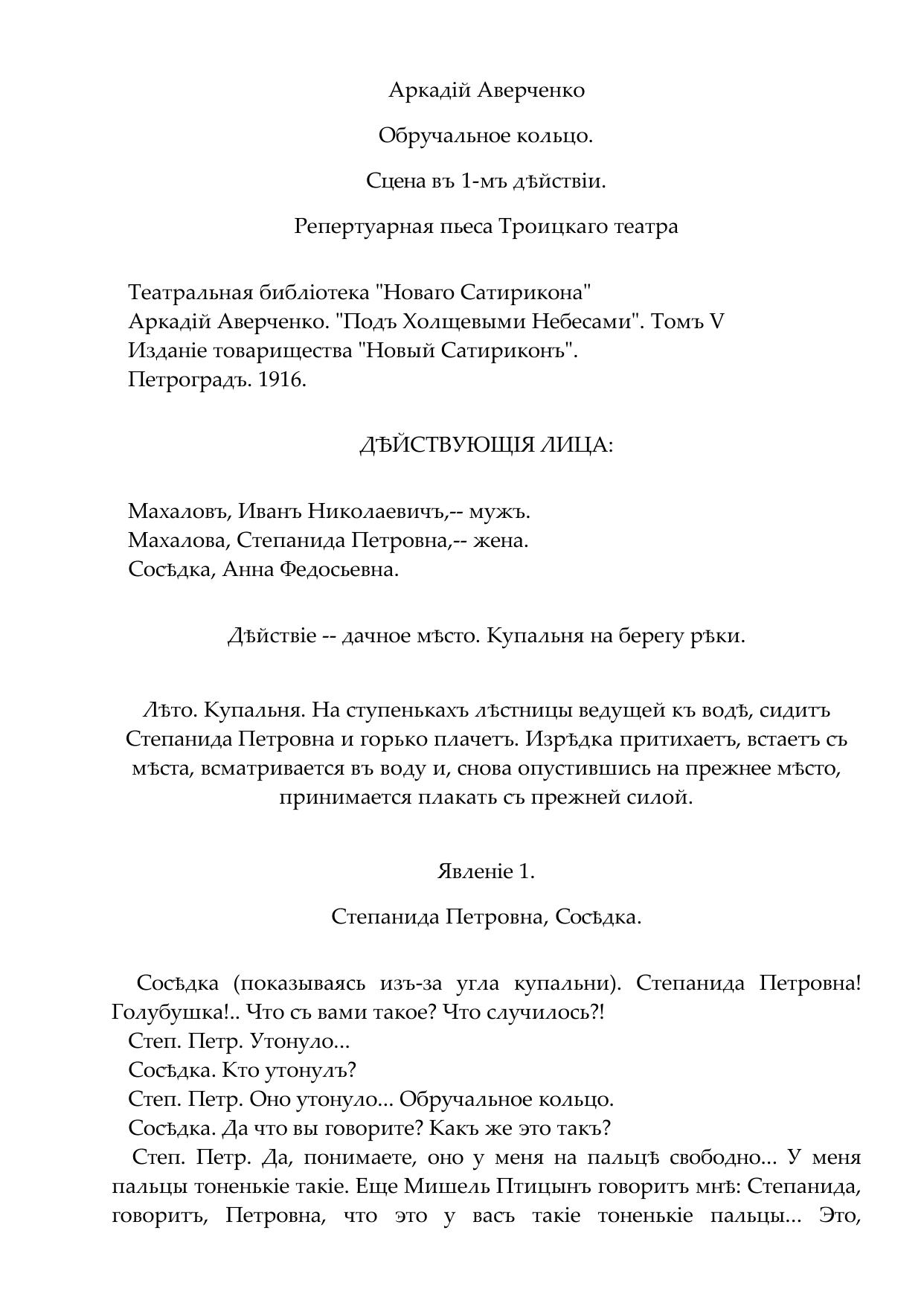 Обручальное кольцо. Сцена в одном действии