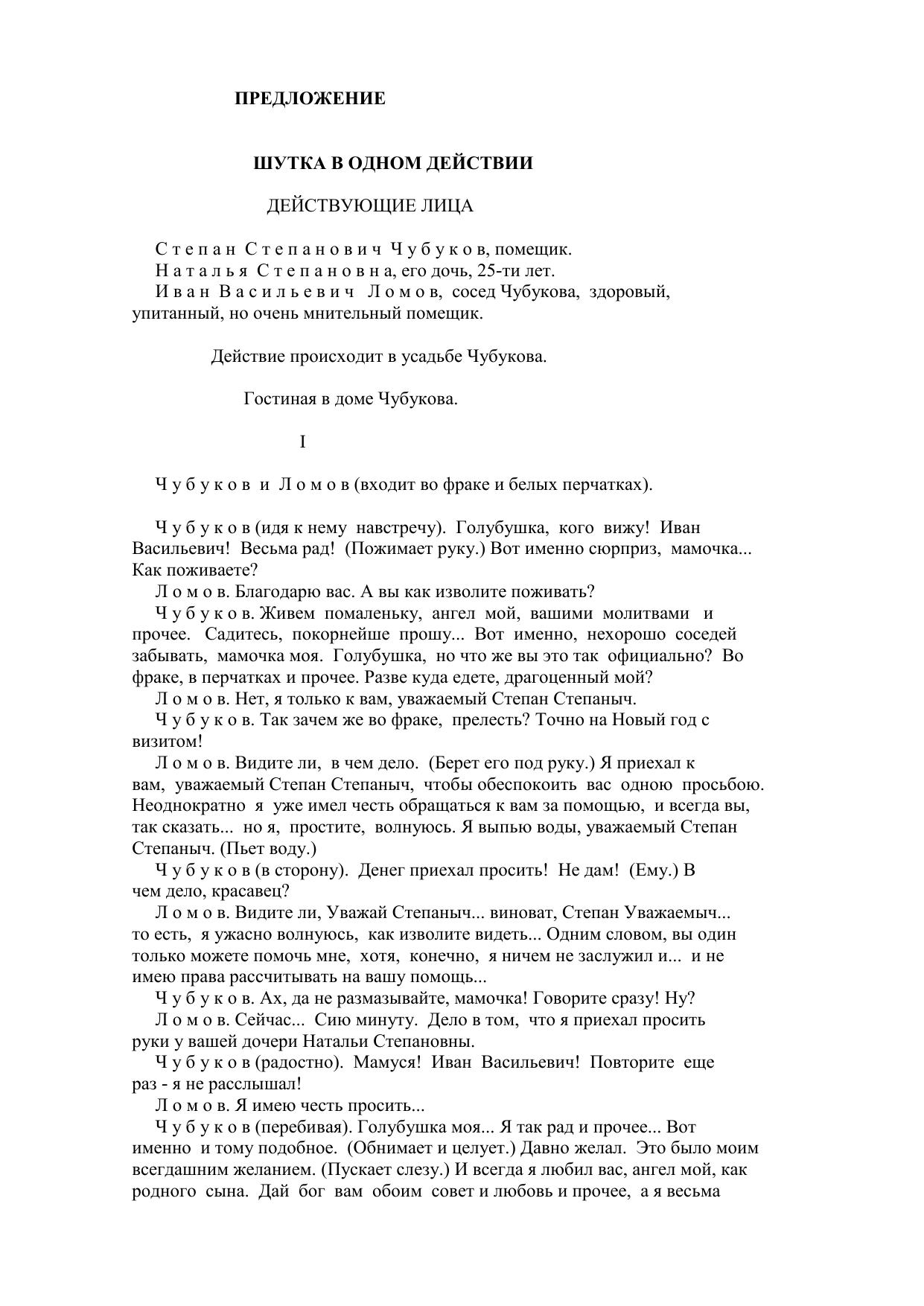 Предложение. Шутка в одном действии