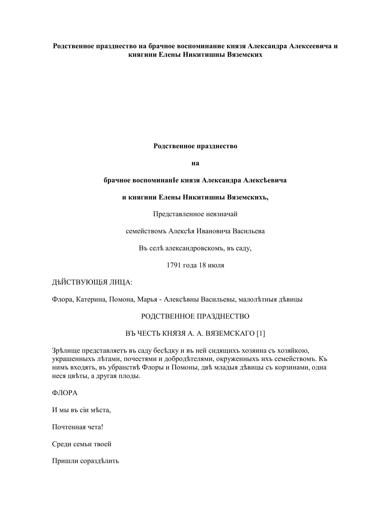 Родственное празднество на брачное воспоминание князя Александра Алексеевича и княгини Елены Никитишны Вяземских