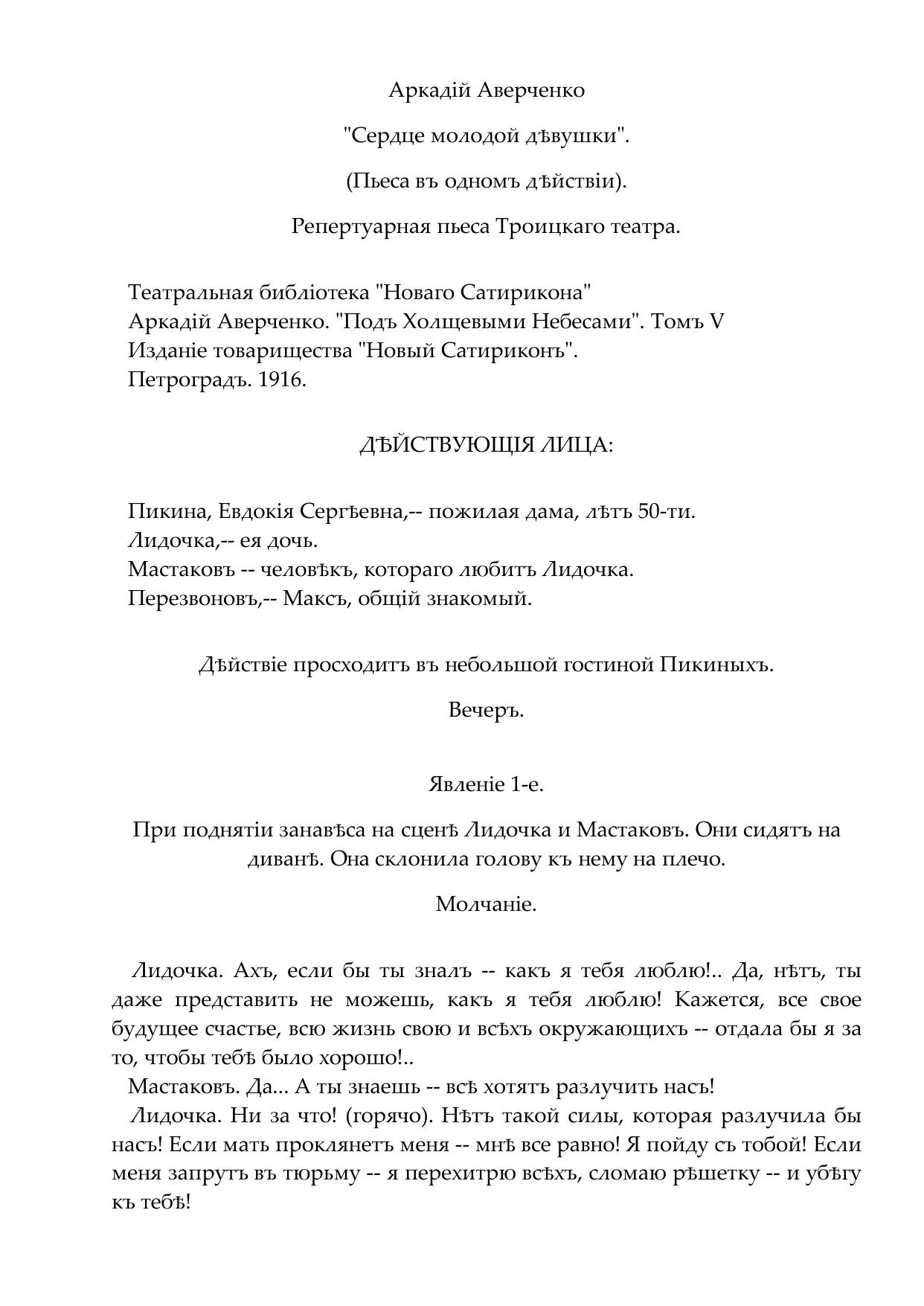 Сердце молодой девушки. Пьеса в одном действии