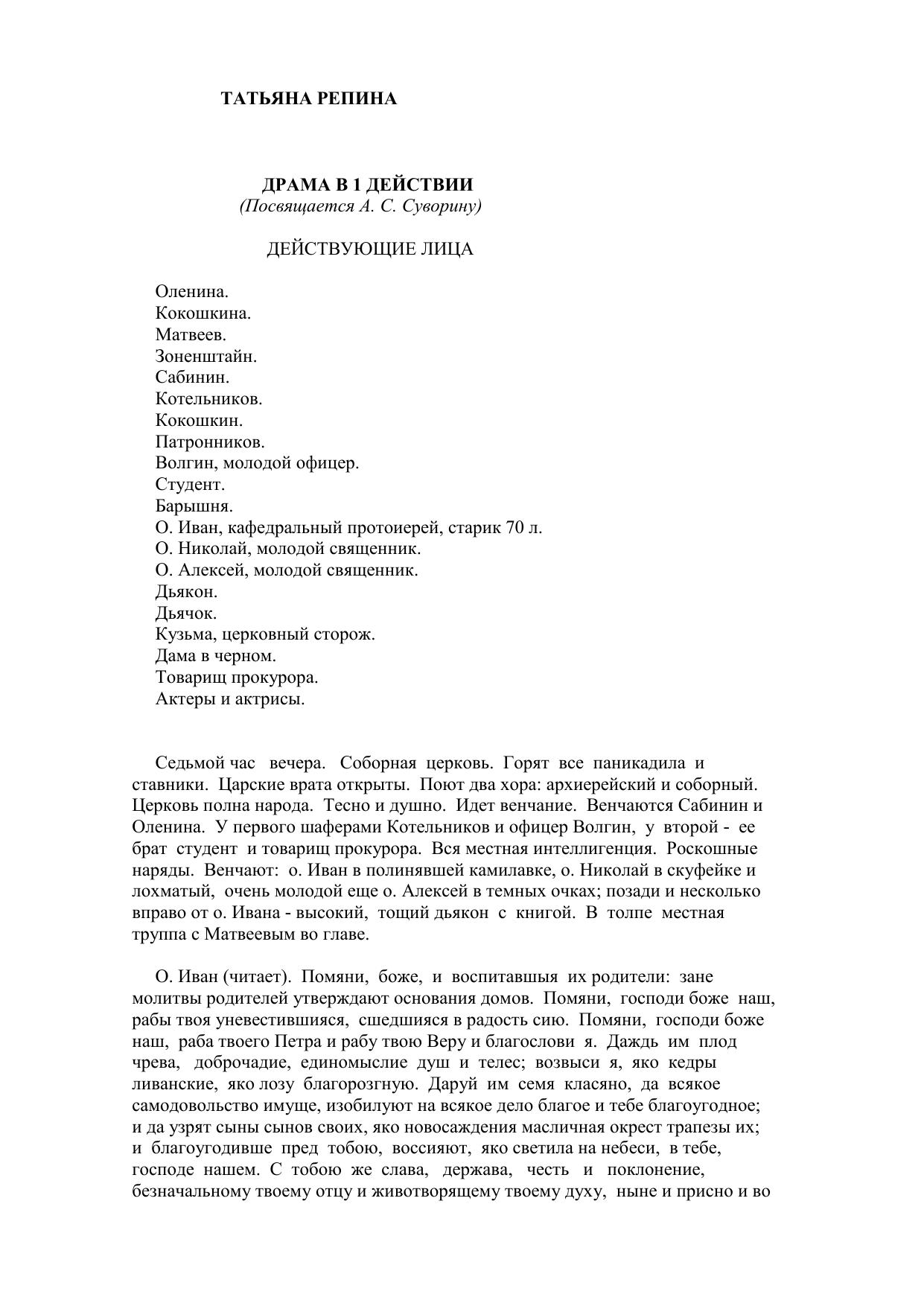 Татьяна Репина. Драма в одном действии