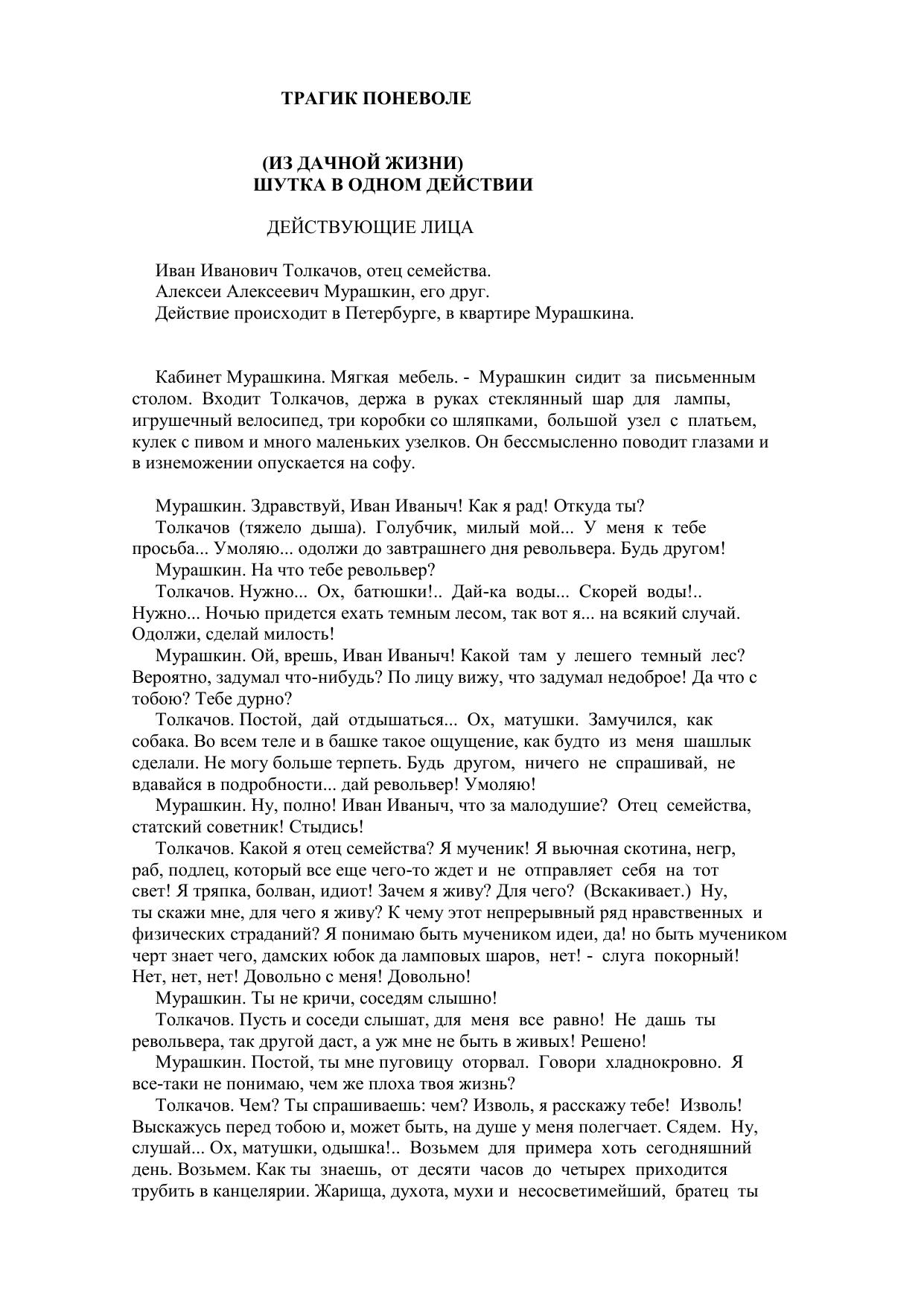 Трагик поневоле (Из дачной жизни). Шутка в одном действии