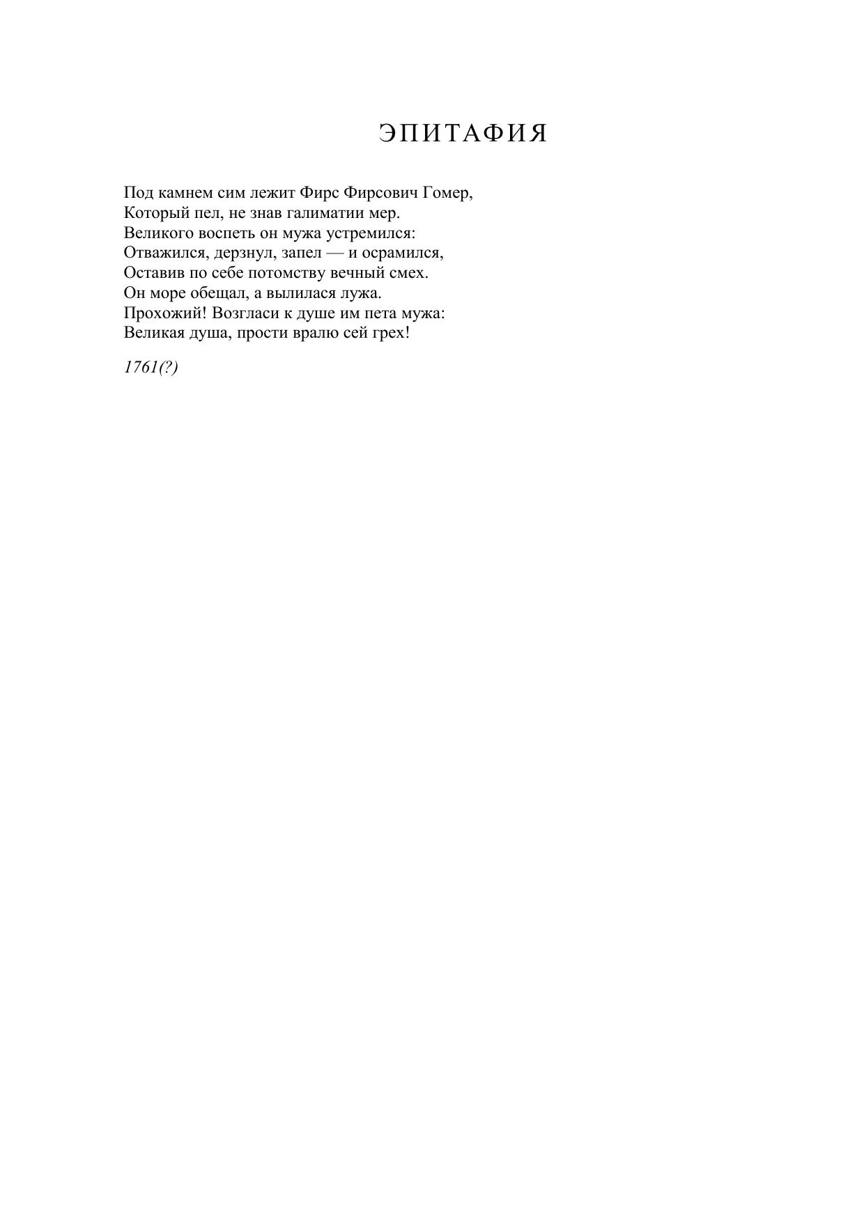 Эпитафия (Под камнем сим лежит Фирс Фирсович Гомер...)