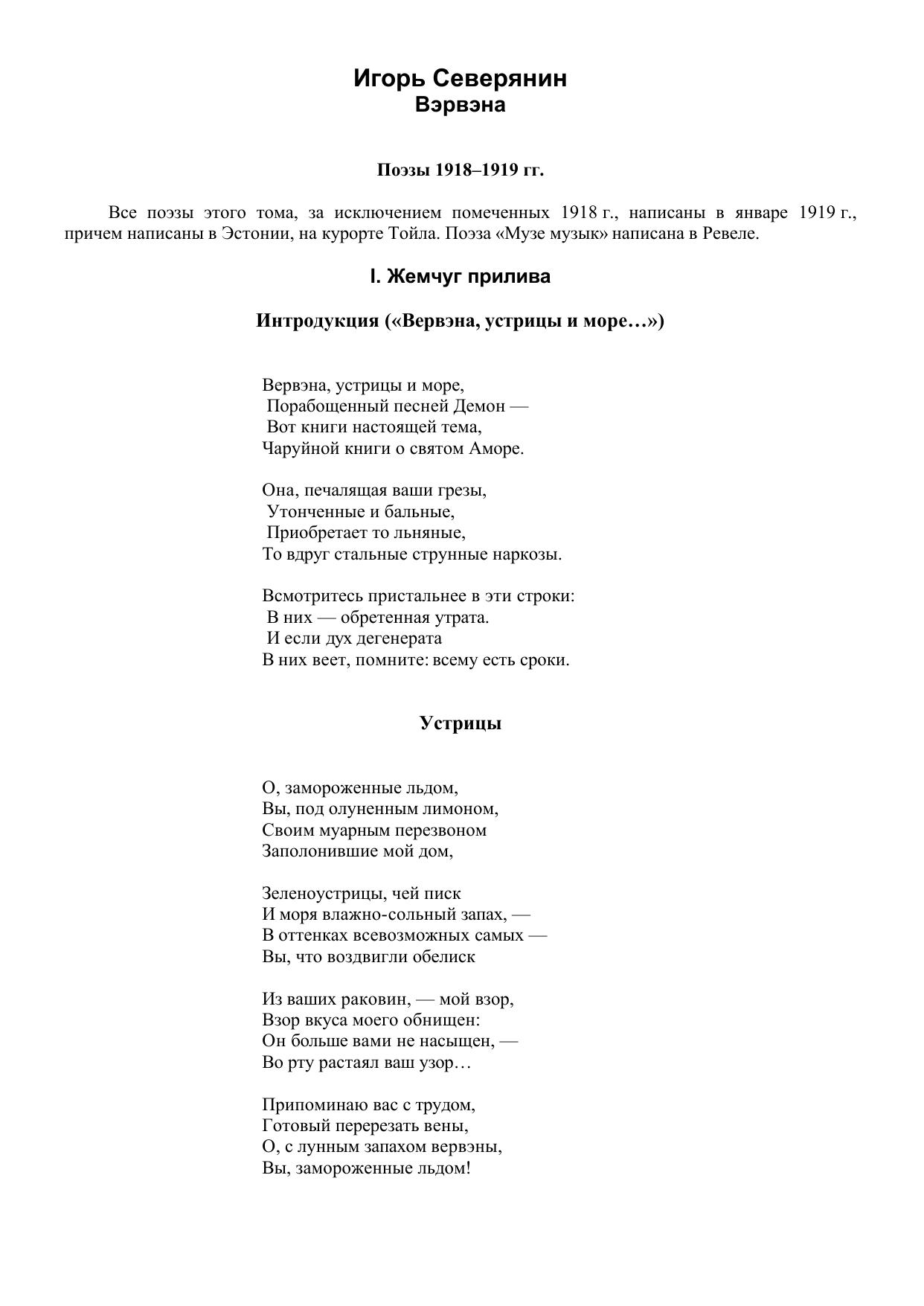 Авторы: Лотарев И.В. (Игорь Северянин)