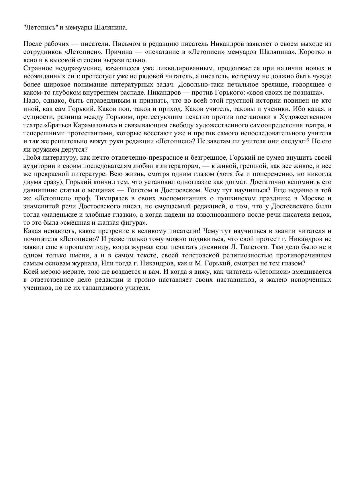"Летопись" и мемуары Шаляпина