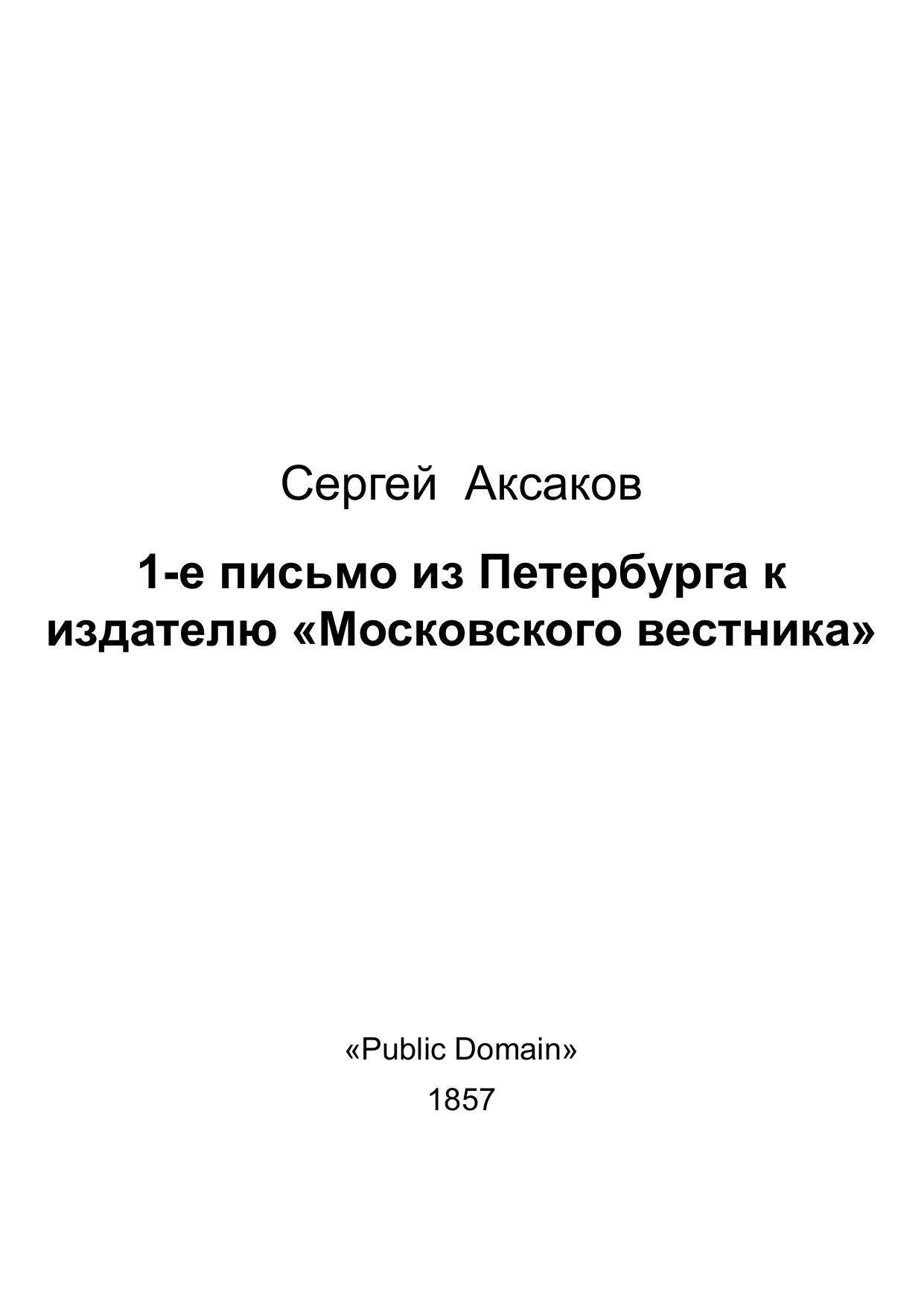 1-е письмо из Петербурга к издателю «Московского вестника»