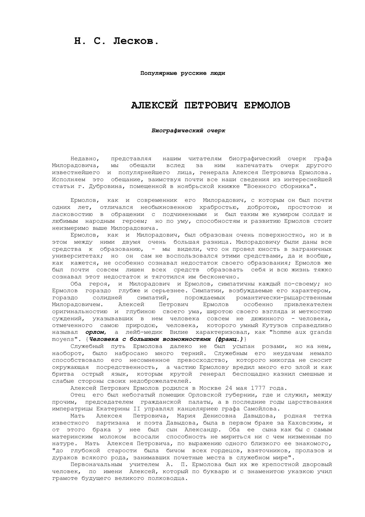 Алексей Петрович Ермолов (Биографический очерк)