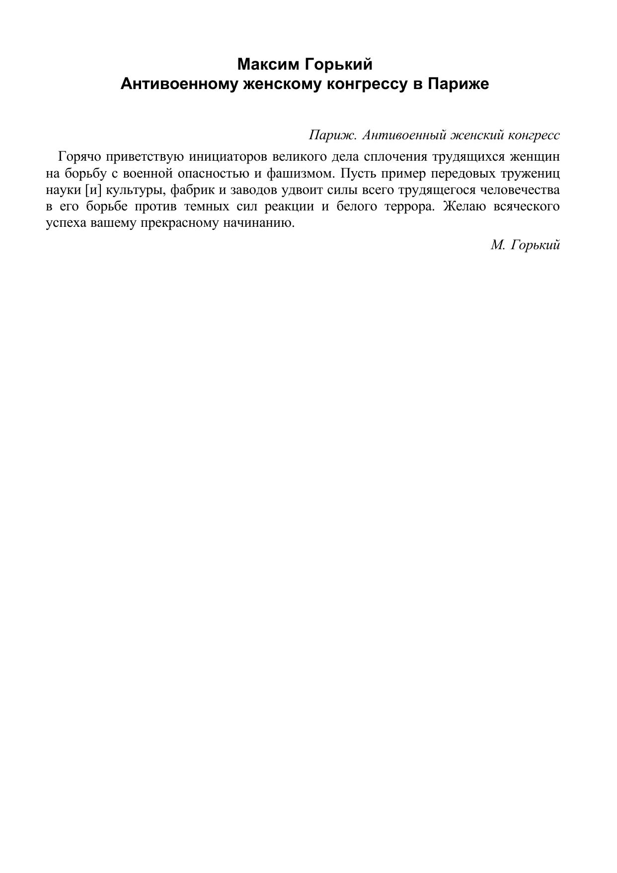 Антивоенному женскому конгрессу в Париже