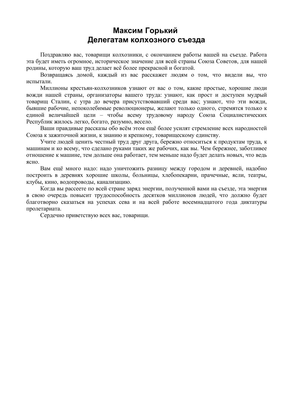 Делегатам колхозного съезда