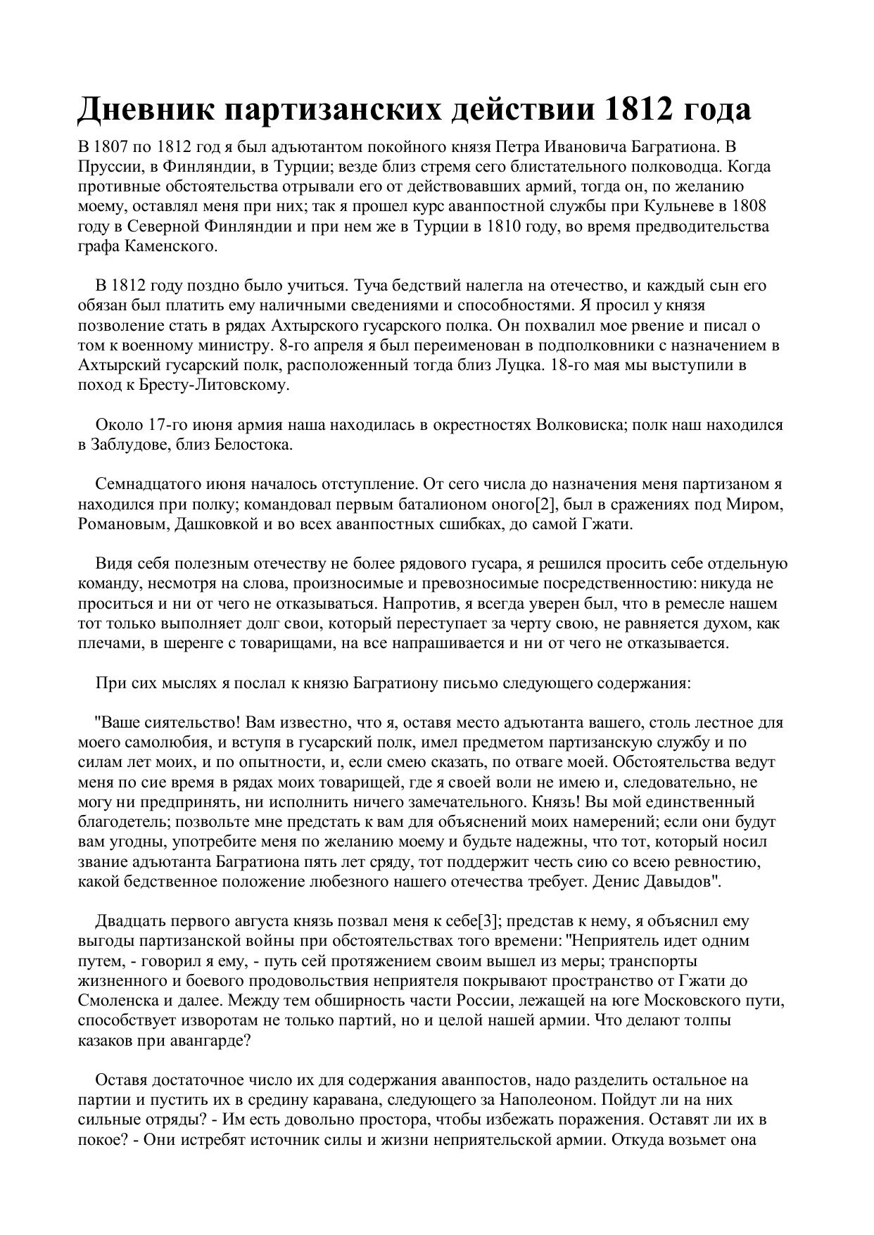 Дневник партизанских действии 1812 года