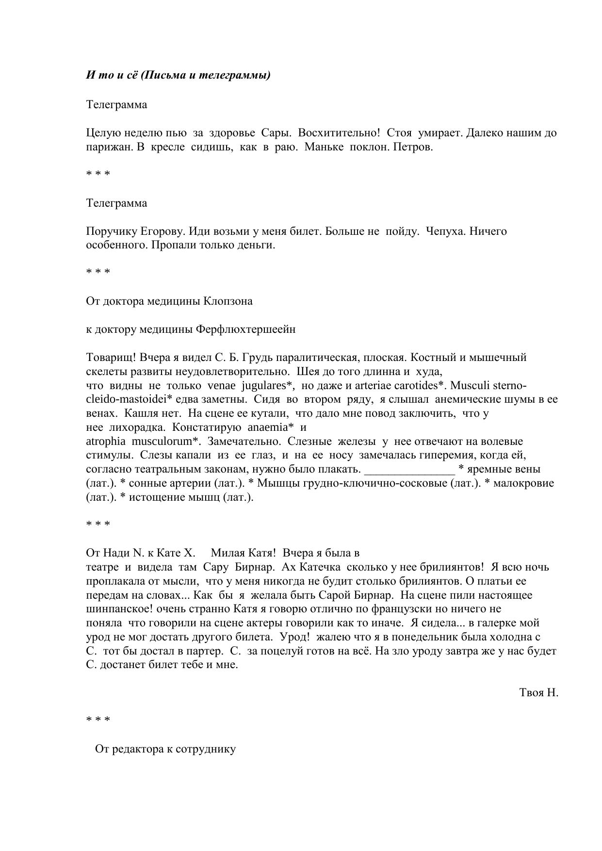 И то и сё (Письма и телеграммы)