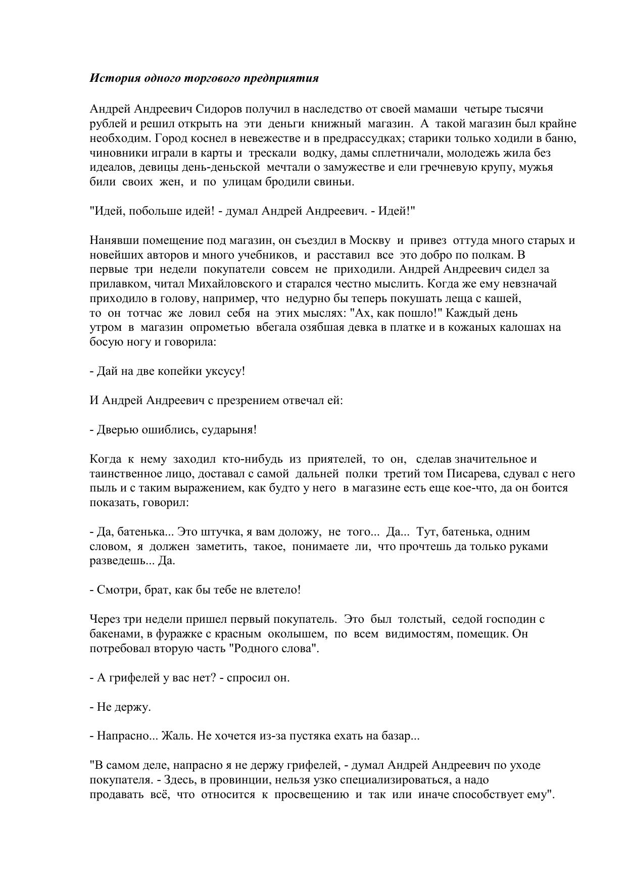 История одного торгового предприятия